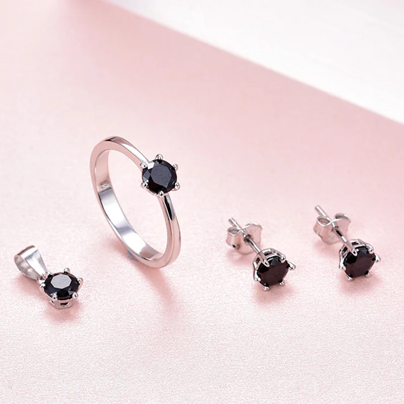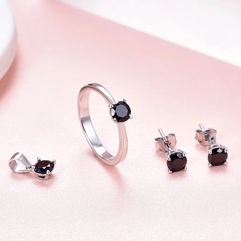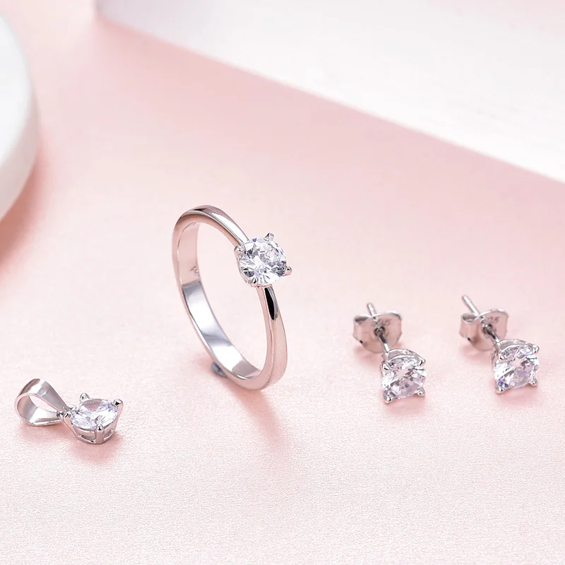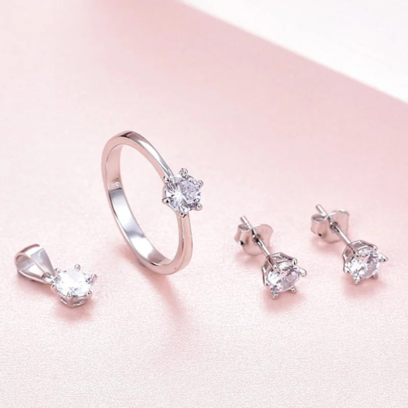 925 Sterling Silver Rhodium Plated 6-Prong Zirconia Set | Solitaire Ring, Earrings & Pendant Trio with Cubic Zirconia Stones