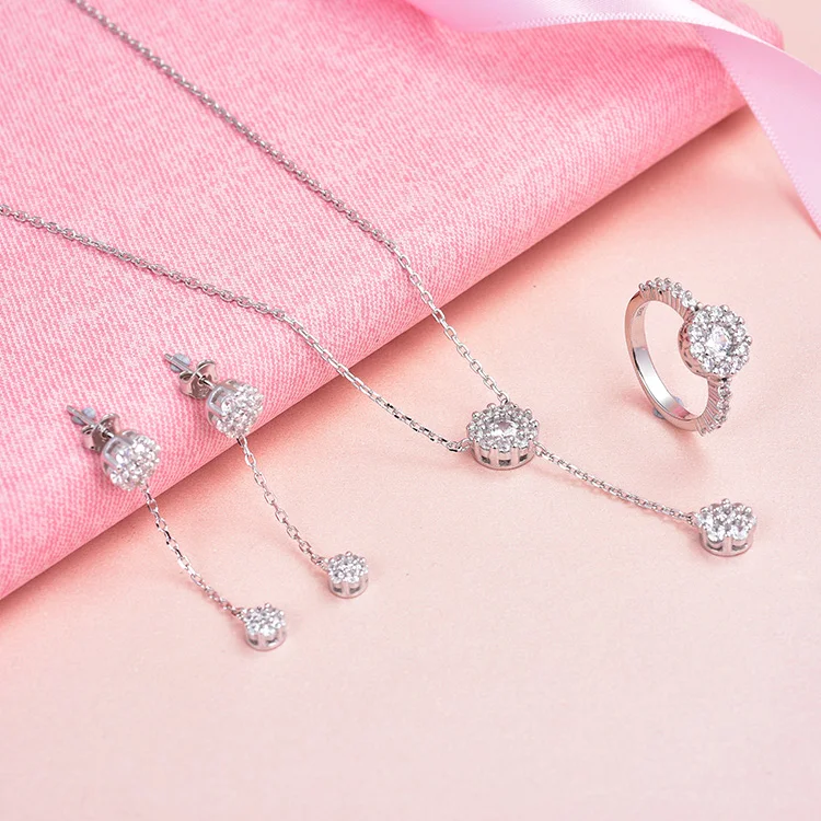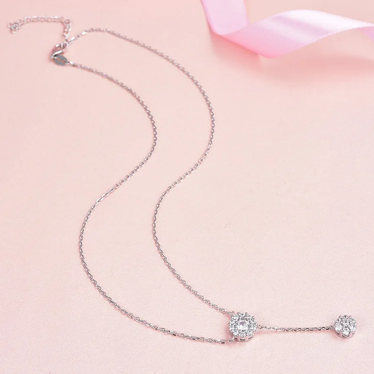 925 Sterling Silver Rhodium Plated Round Pendant Necklace | Elongated Dangling Zirconia Medallion | Adjustable Chain Jewelry