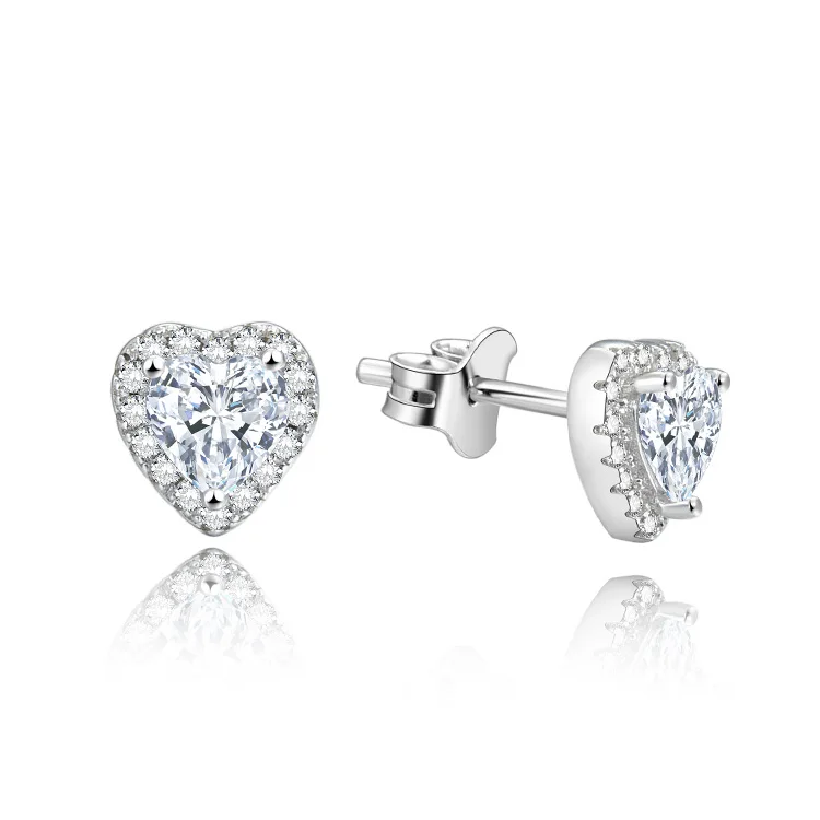 925 Sterling Silver Rhodium Plated Heart Stud Earrings | Double Heart-Shaped Cubic Zirconia | Hypoallergenic Gift for Women