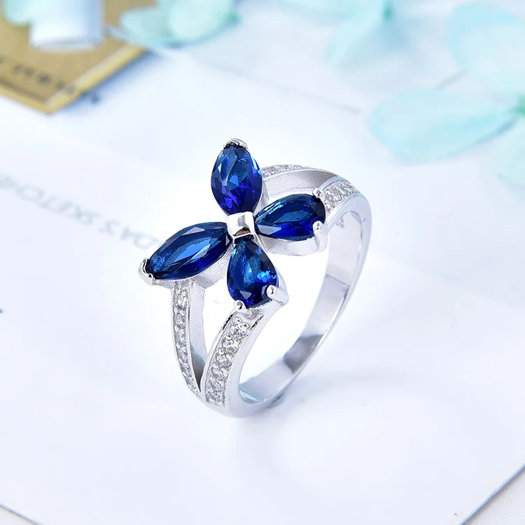 925 Sterling Silver Floral Ring | Blossom Design with Cubic Zirconia Stones | Rhodium Plated Botanical Jewelry for Women