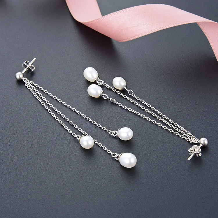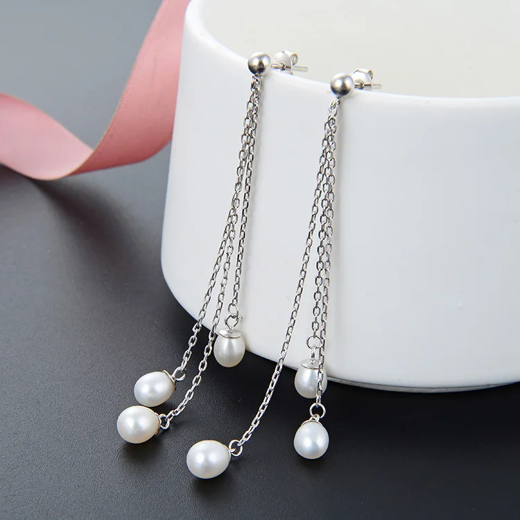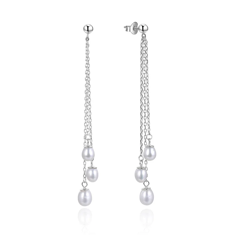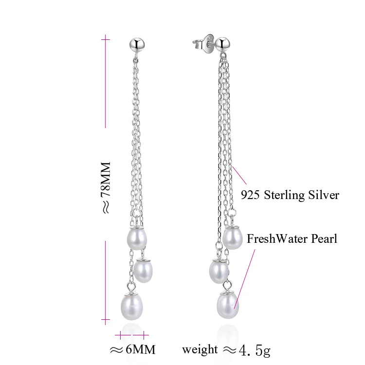 925 Sterling Silver Tassel Earrings | Natural Freshwater Pearls on Dangling Strands | Hypoallergenic Pearl Studs for Women
