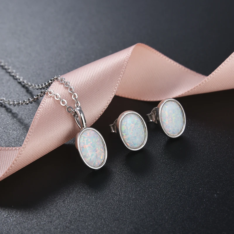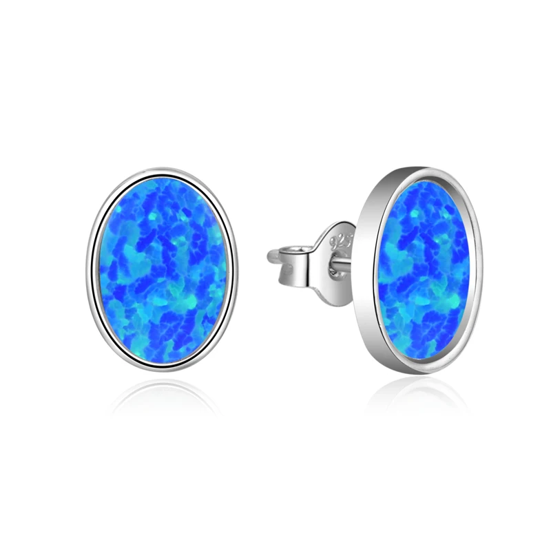925 Sterling Silver Oval Stud Earrings | Simulated Opalite Center Stone | Hypoallergenic Play-of-Color Ear Studs for Women