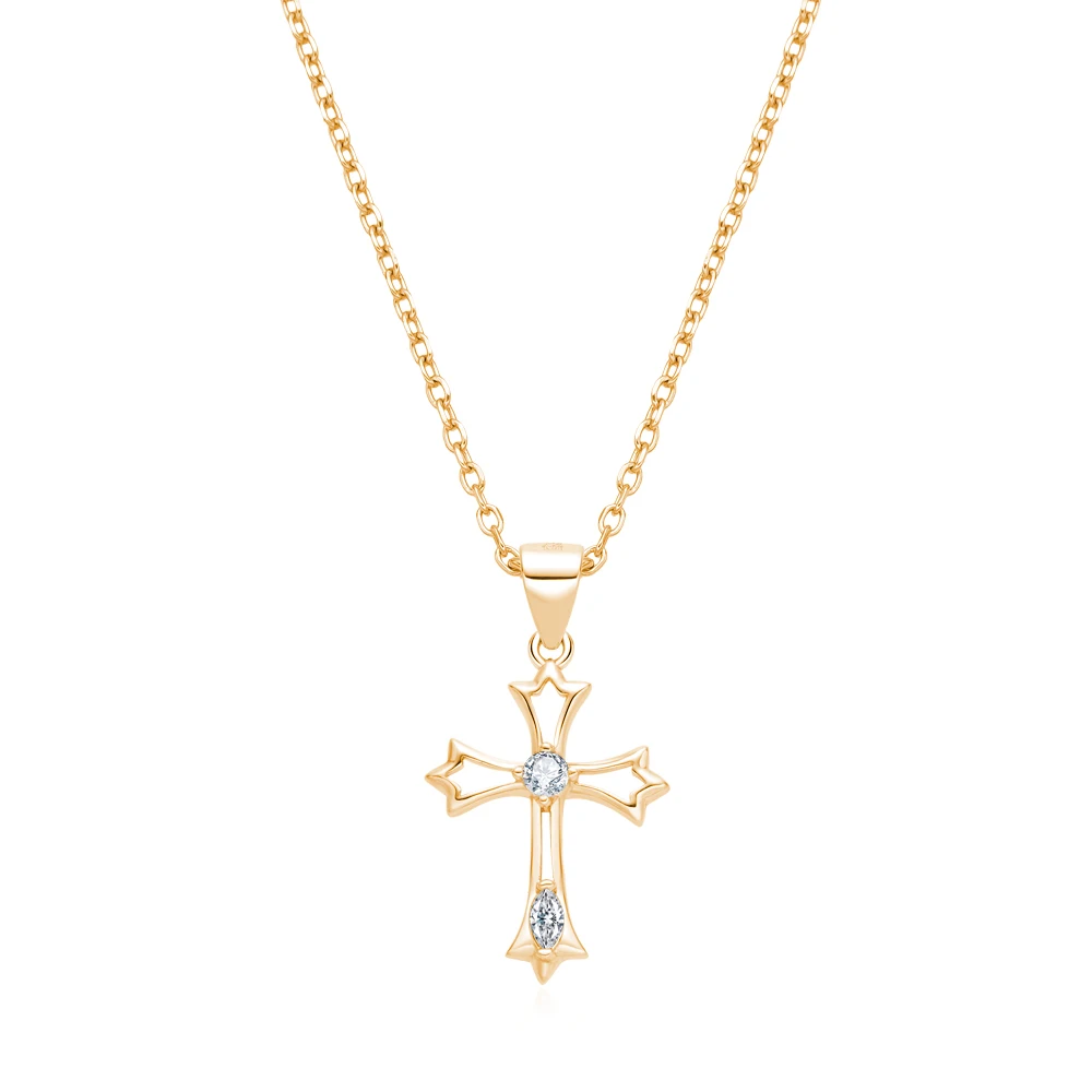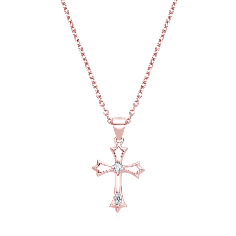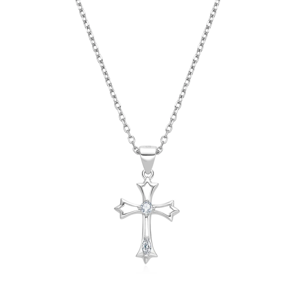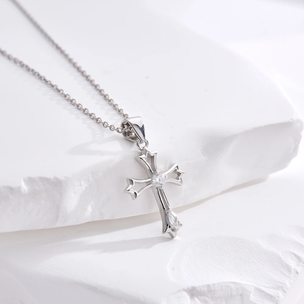 S925 Sterling Silver Cross Pendant Necklace Rhodium Plating Zircon Trendy for Christian Engagement Gift