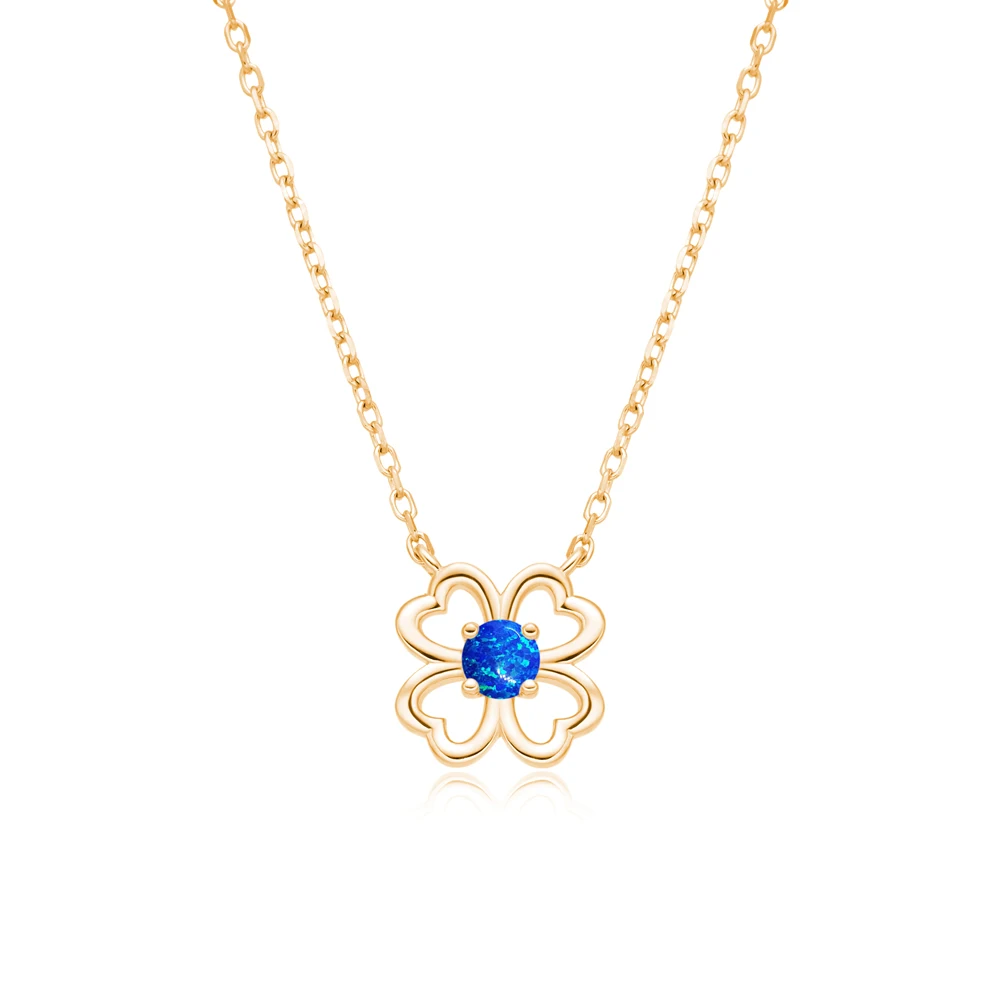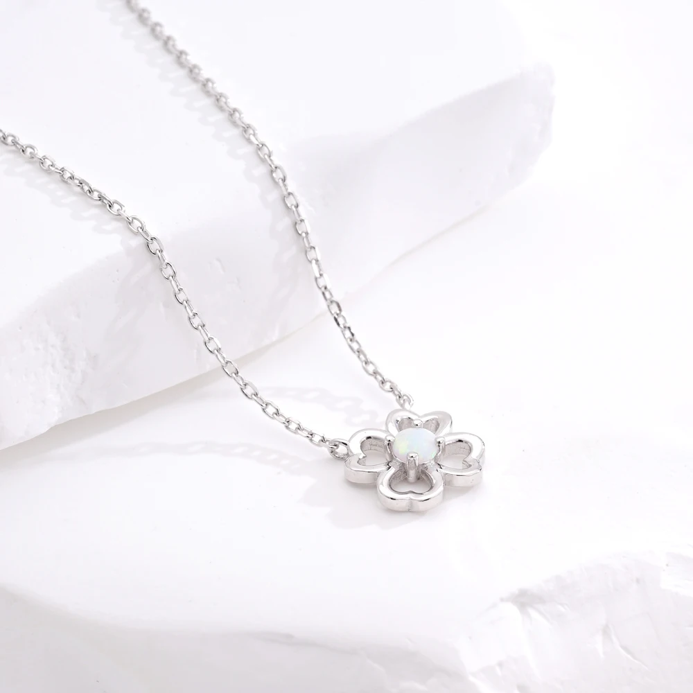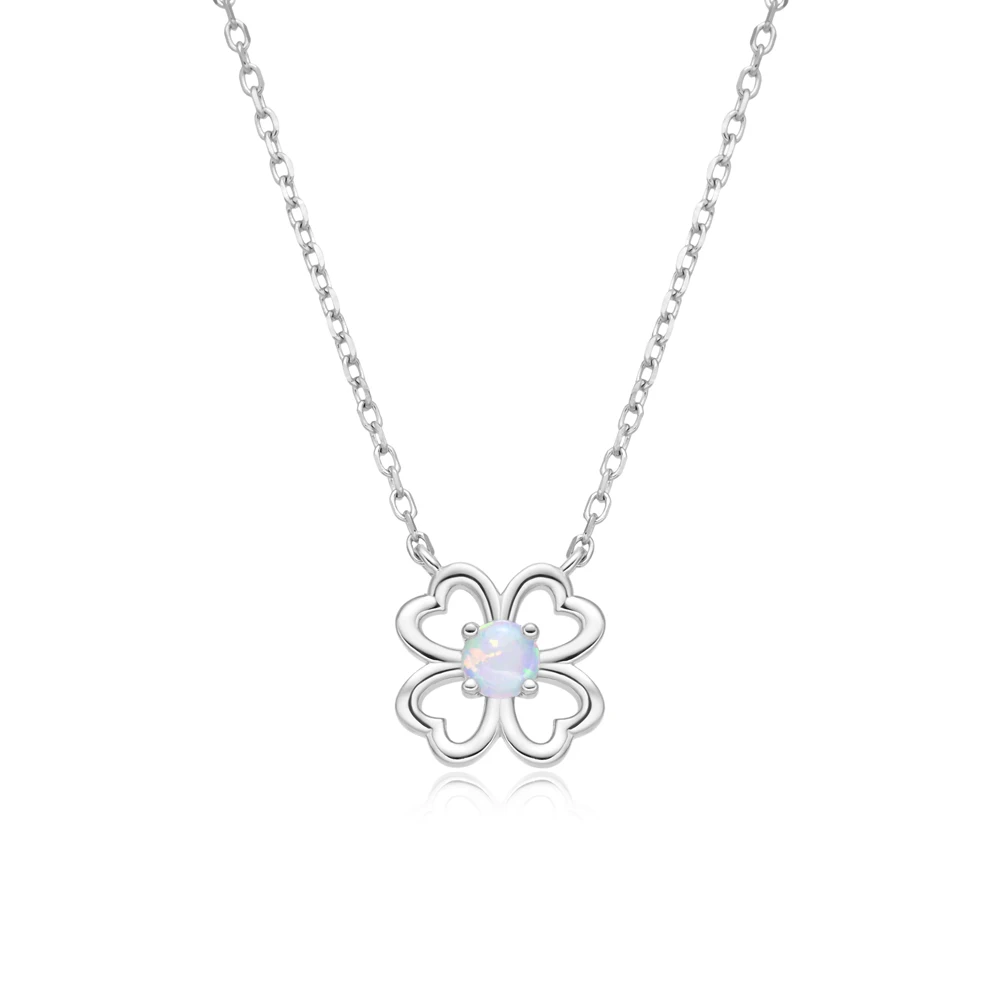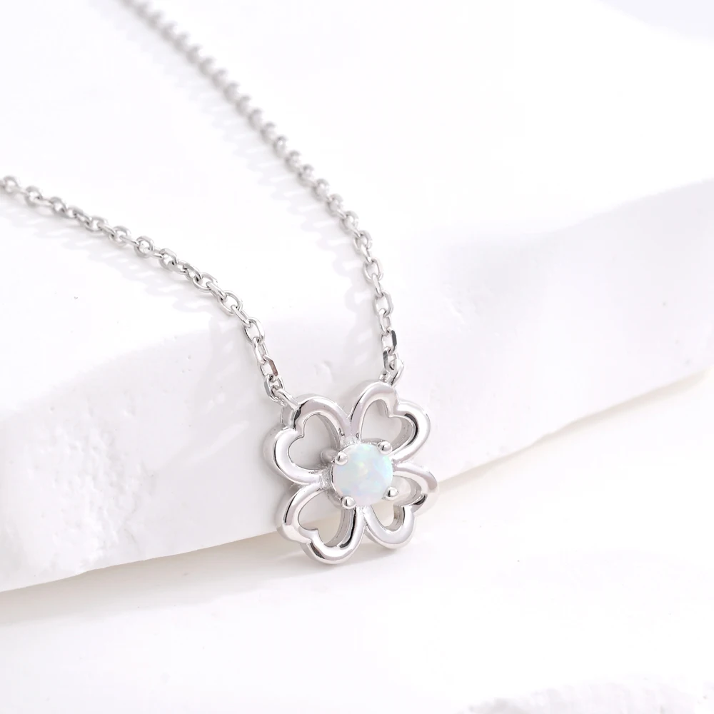 925 Sterling Silver Four Clover Rhodium Plating Fire OPal Bowknot Pendant Chic Bling Jewelry Necklace
