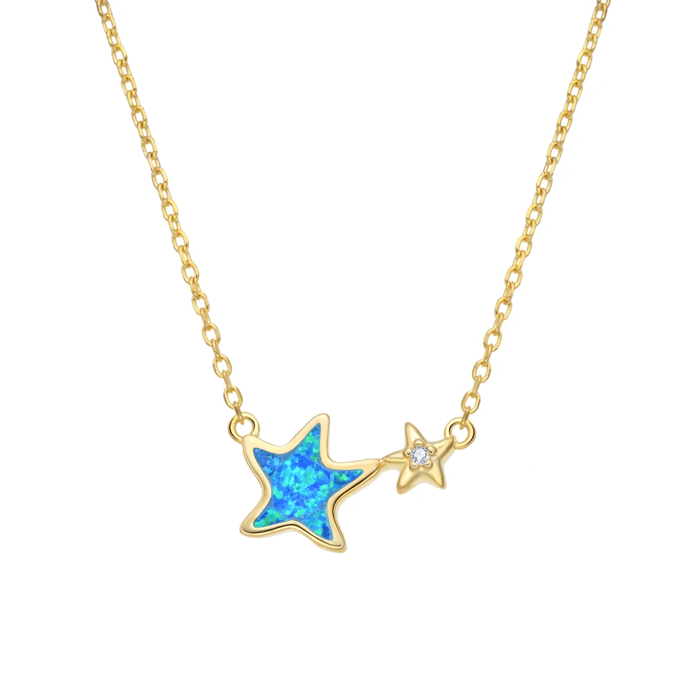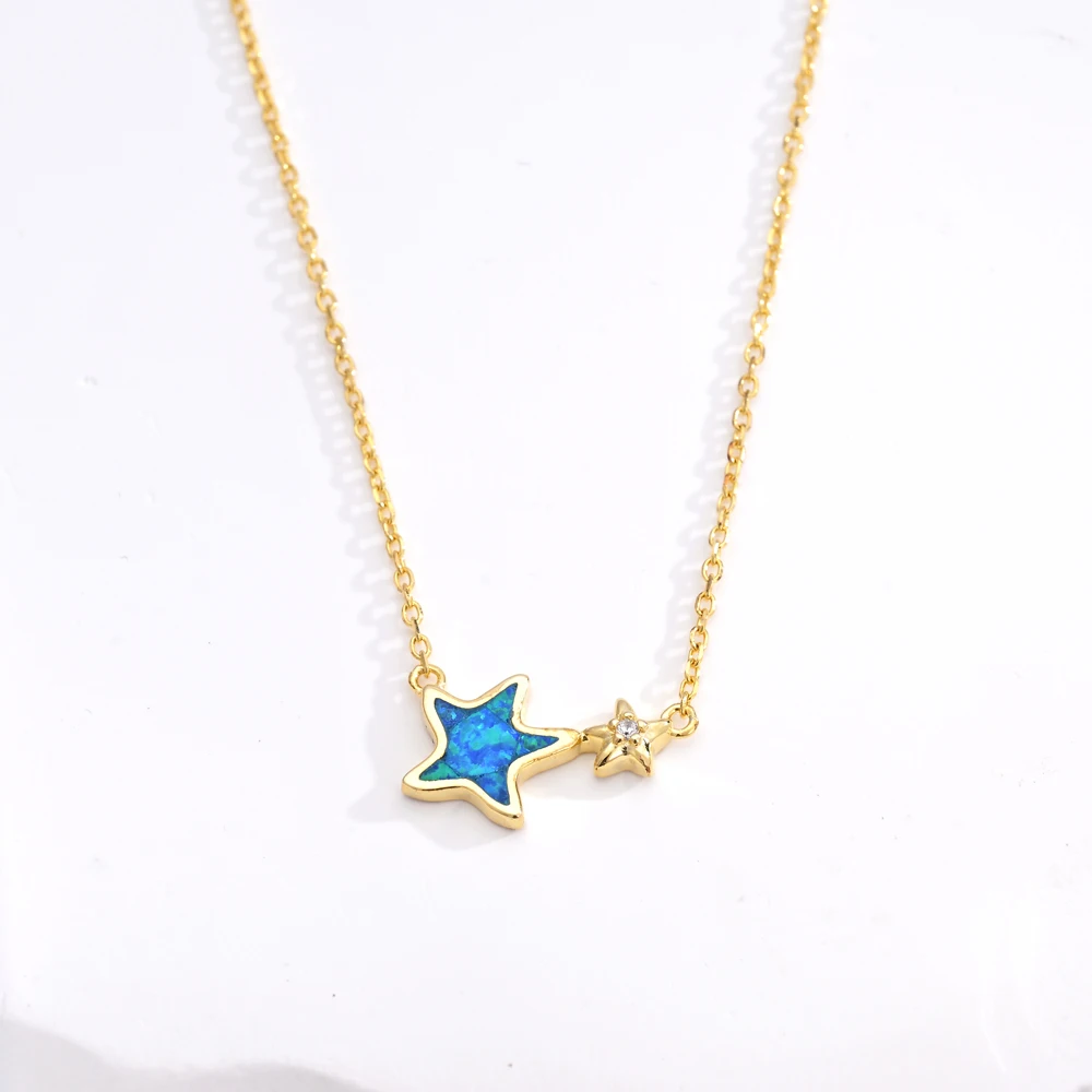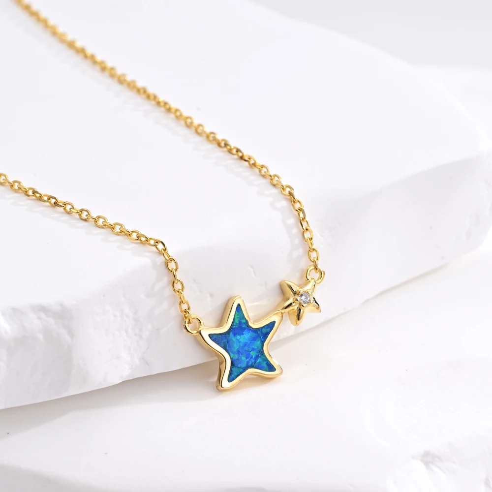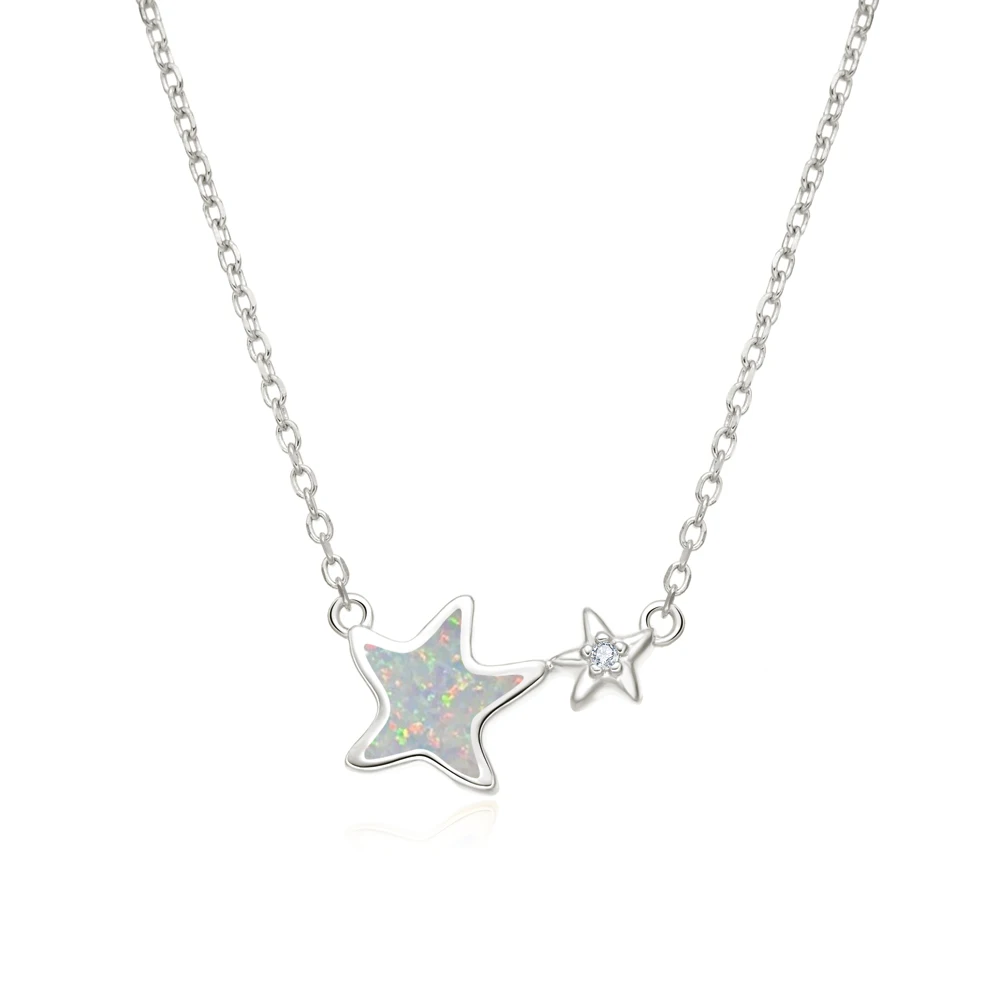 Elegant Whisper Moonlit Hues 925 Sterling Silver with Star Pattern Bezel Setting Opal Inlay Necklace