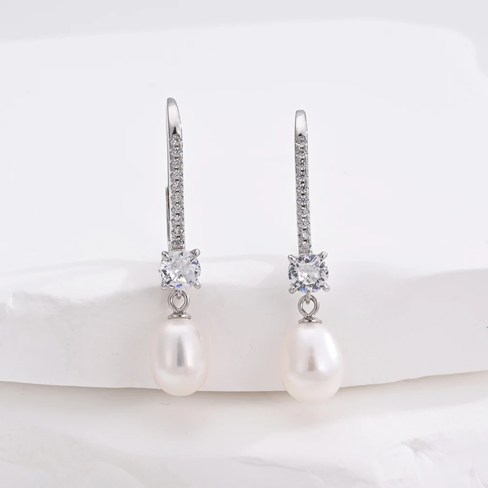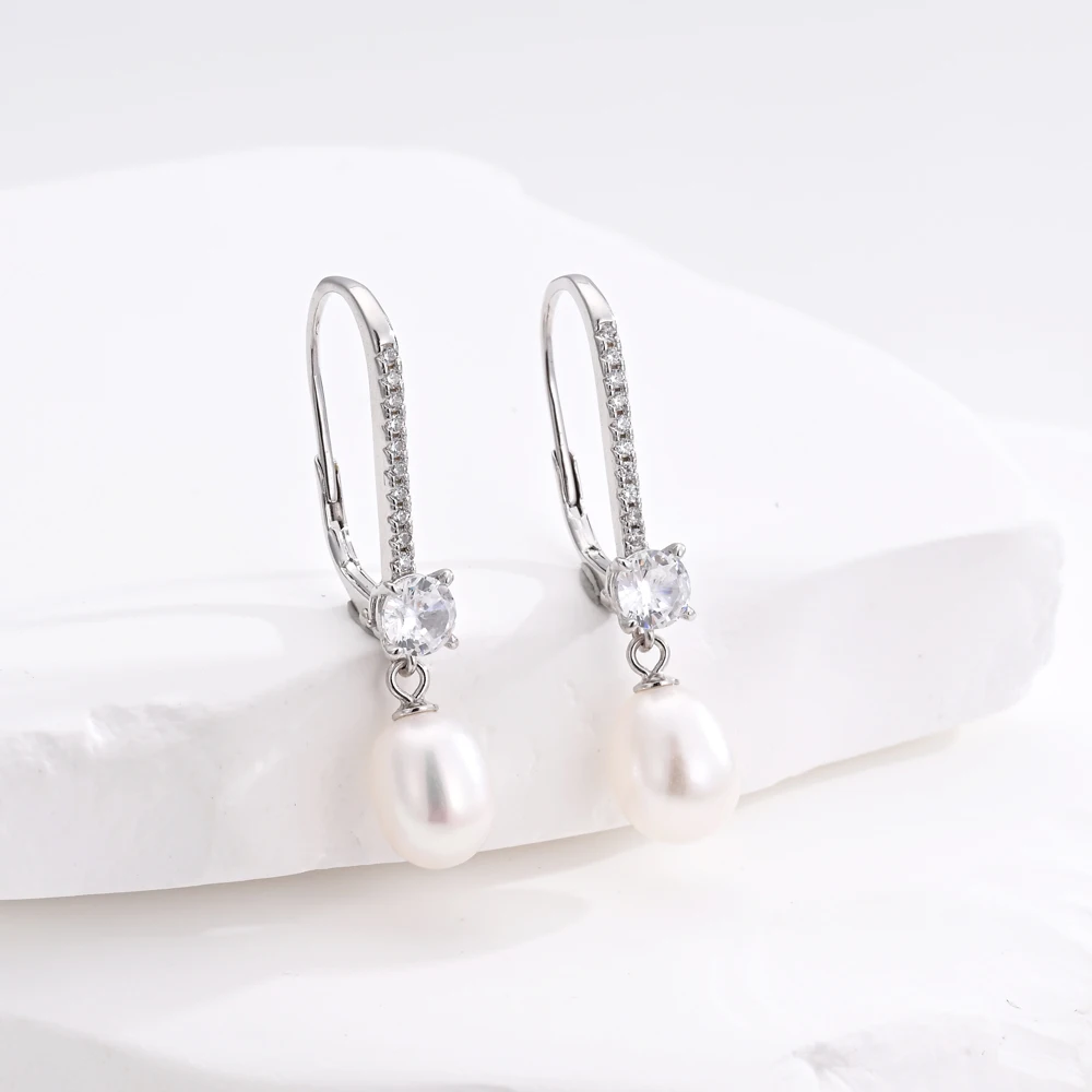 Women's Trendy FashionJewelry Drop Earrings Freshwater Pearls 925 Silver Drop Earrings