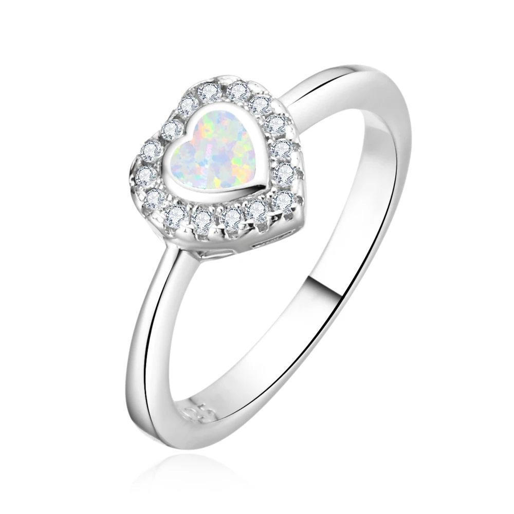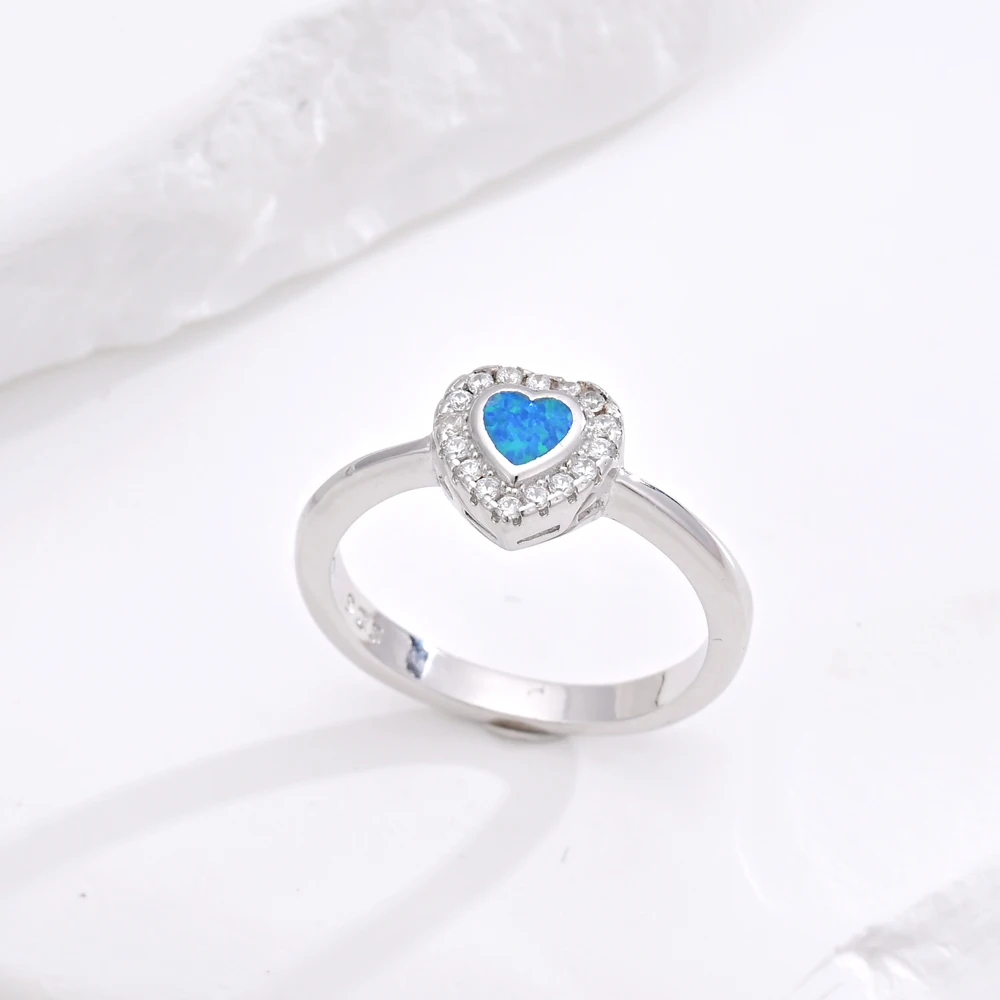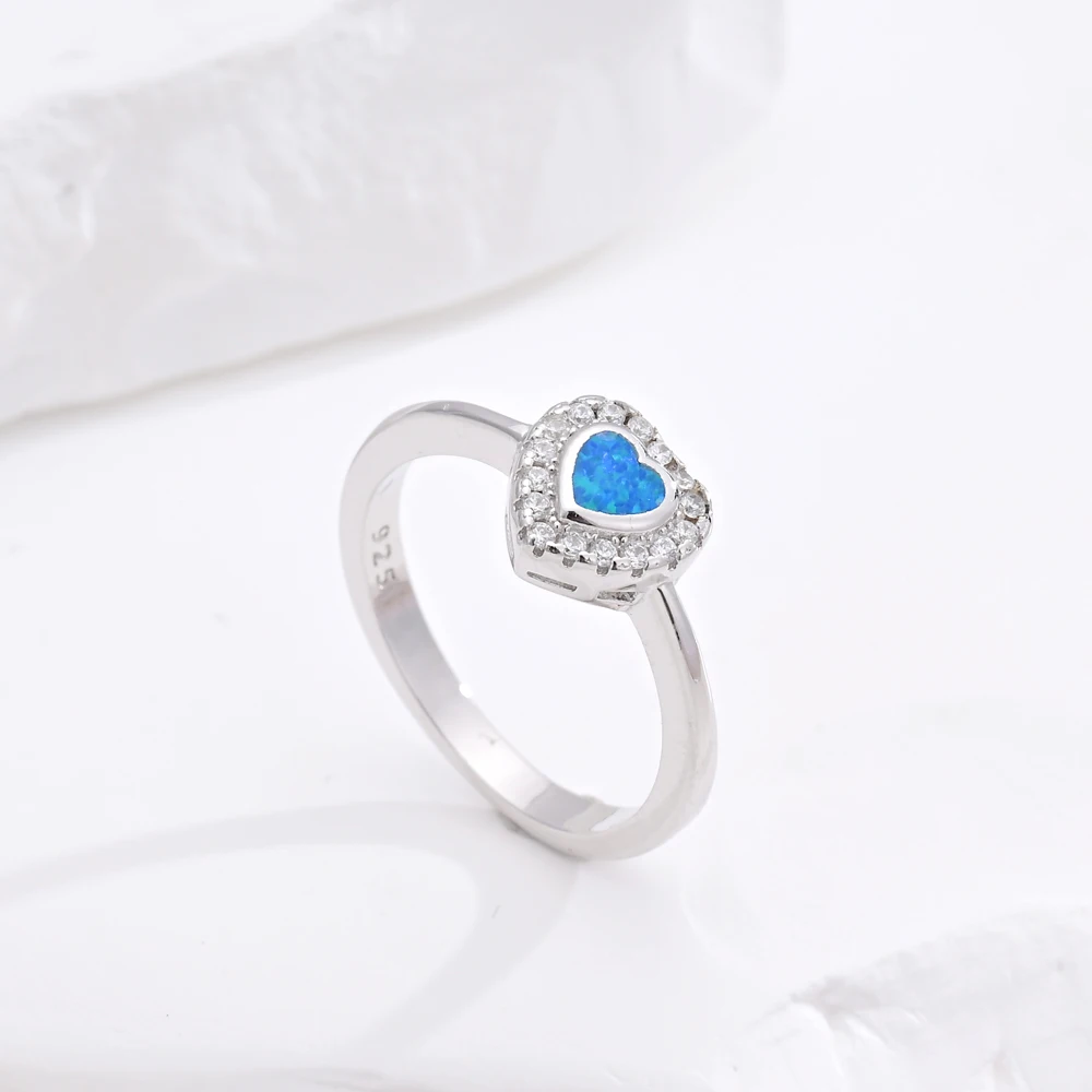 Elegant 925 Sterling Silver Blue Opal Heart Shaped Ring Fashionable Rhodium Plated Engagement Wedding Gift Jewelry