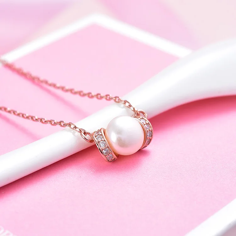 Rhodium Plated 925 Sterling Silver Pendant Necklace | Natural Freshwater Pearl with Cubic Zirconia Accents | Adjustable Length