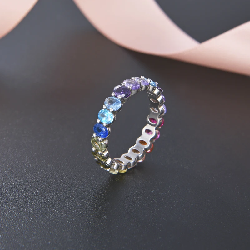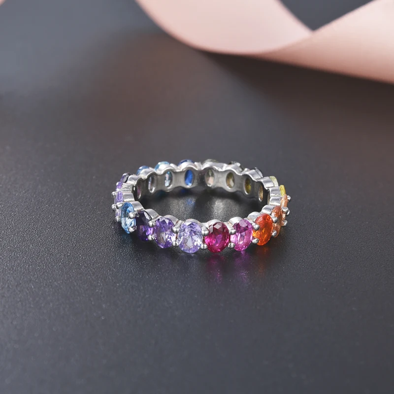 925 Sterling Silver Multi-Color Oval Zirconia Eternity Ring | Rose Gold/Rhodium Plated Full Circle Gemstone Band | Stacking Ring