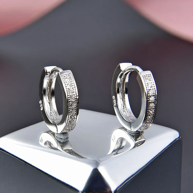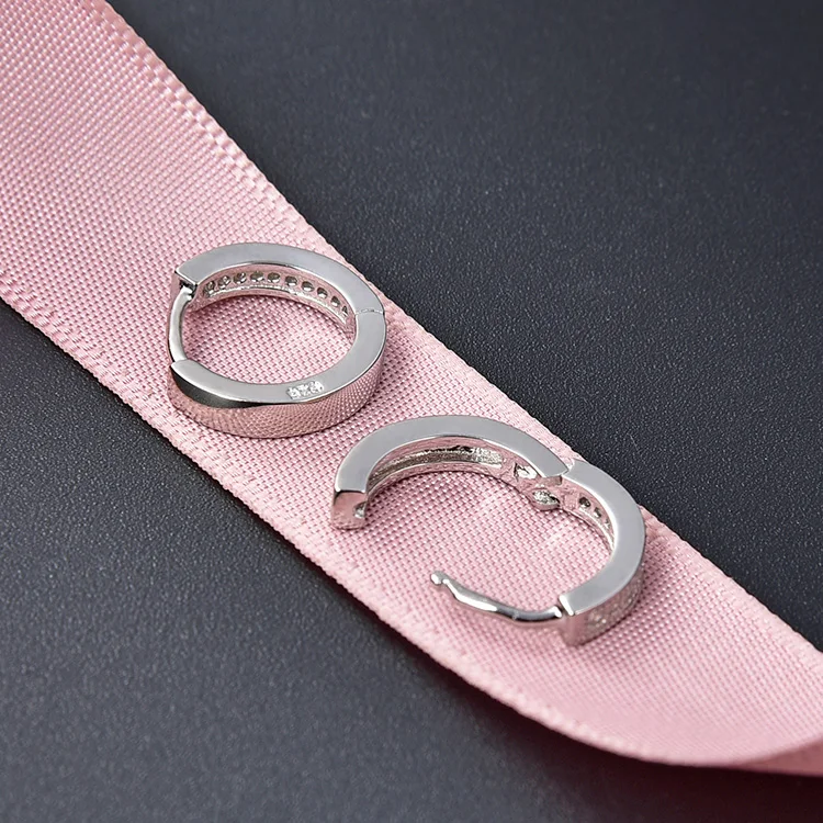 12mm Rhodium Plated Silver Hoop Earrings | Front-Facing Cubic Zirconia Sparkle | Hypoallergenic Comfort Fit Earrings