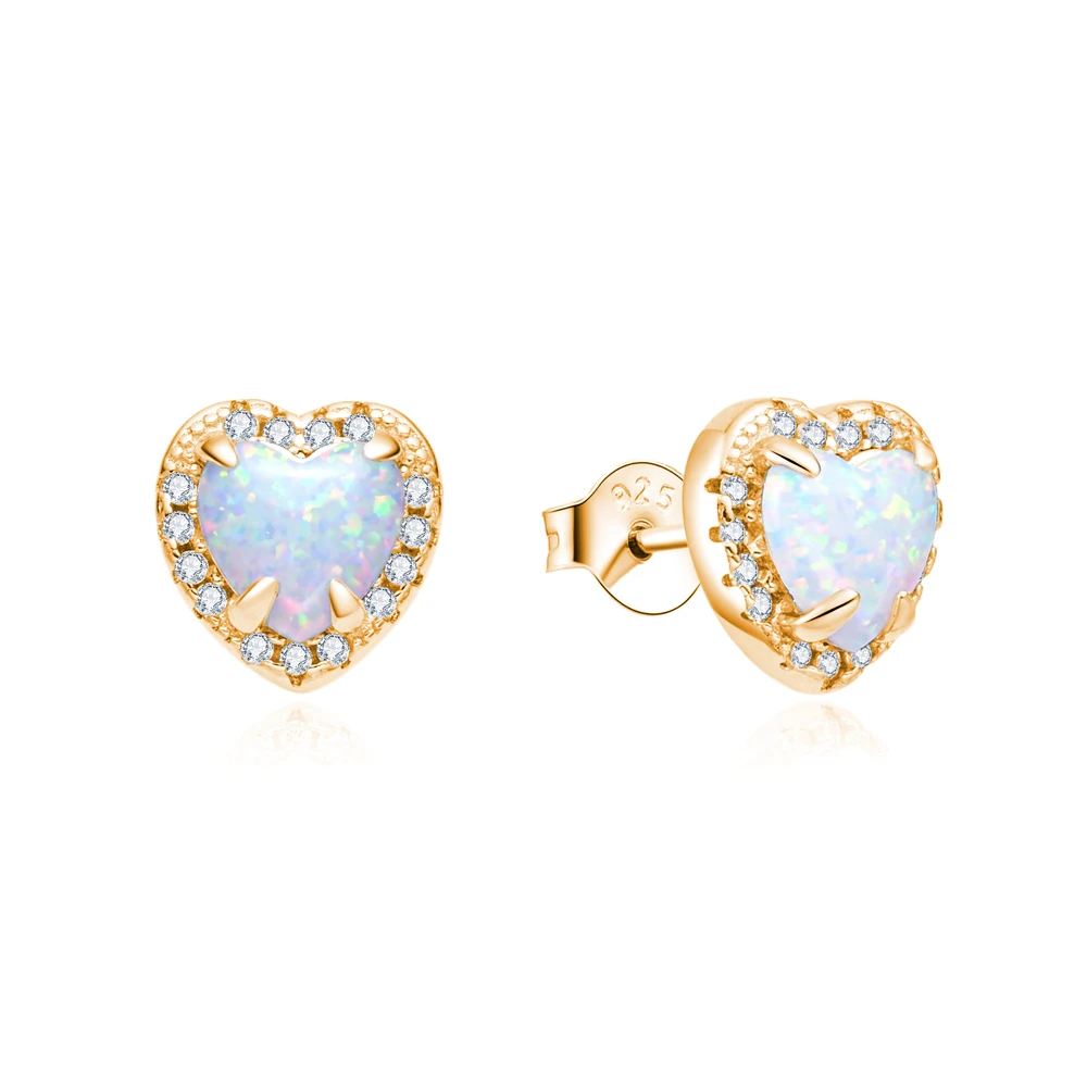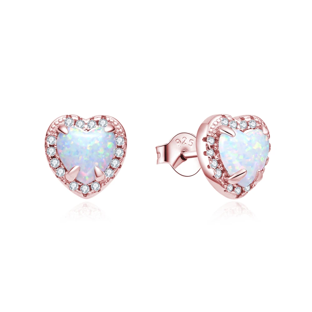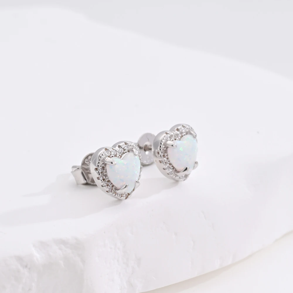 925 Sterling Silver Synthetic Opal Stone for Engagement Party Daily & Valentine's Love Heart Stud Earrings
