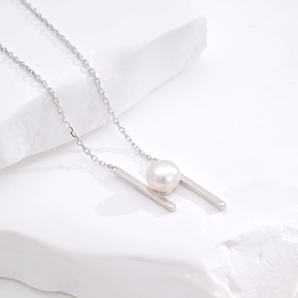 Elegant Women's 925 Sterling Silver Freshwater Pearl Necklace Fashionable Accessory