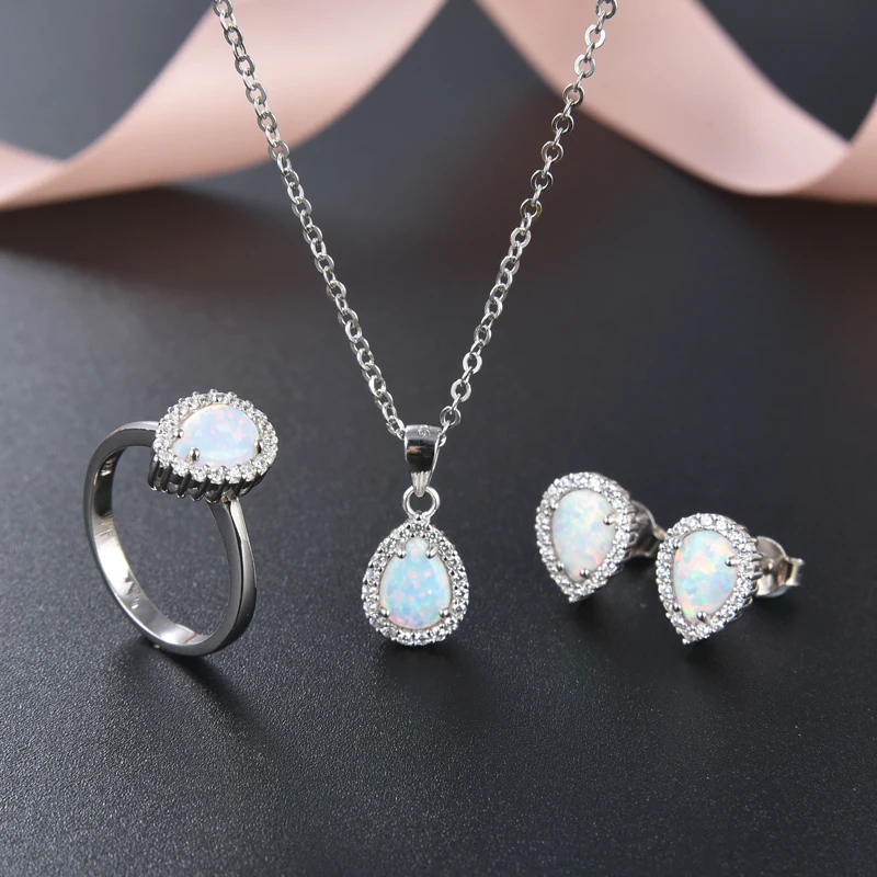 925 Sterling Silver Rhodium Plated 8*12mm Pear Shape Opal Rings