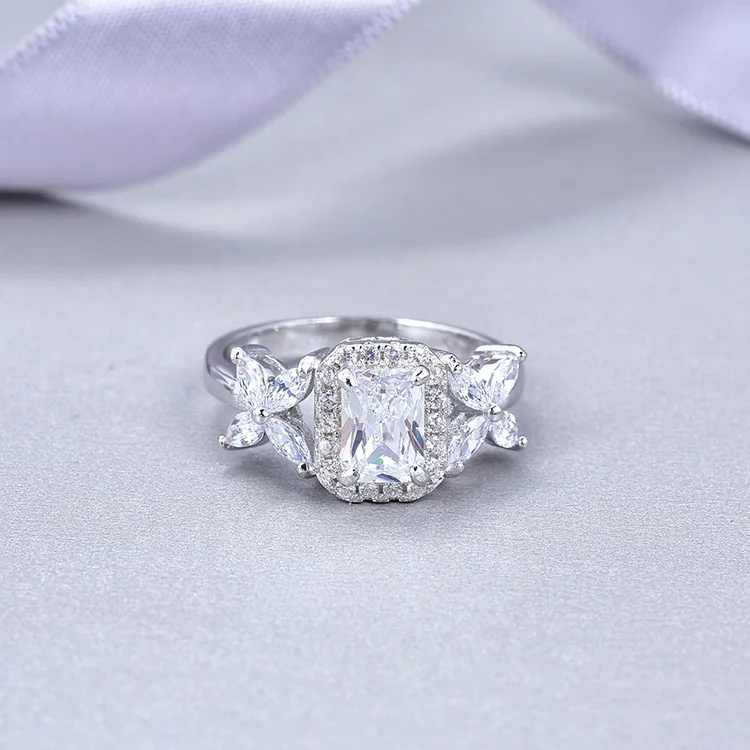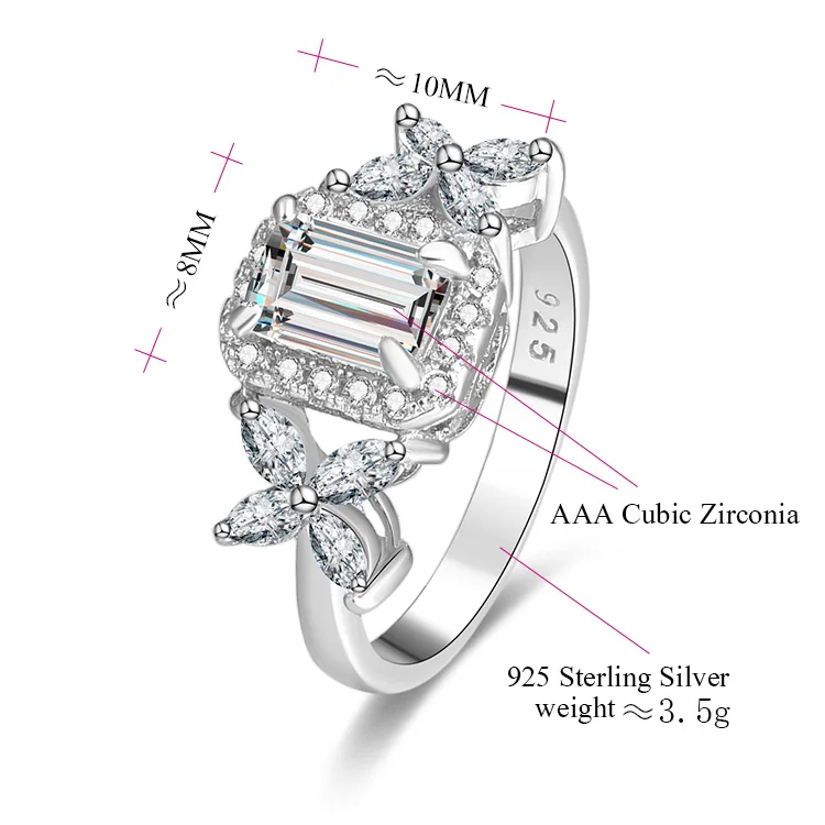 POLIVA 925 High Quality Women Jwelleries Prices 18k Diamond Rings Emerald Cut Engagement Jewelry Finger Ring Sterling Silver