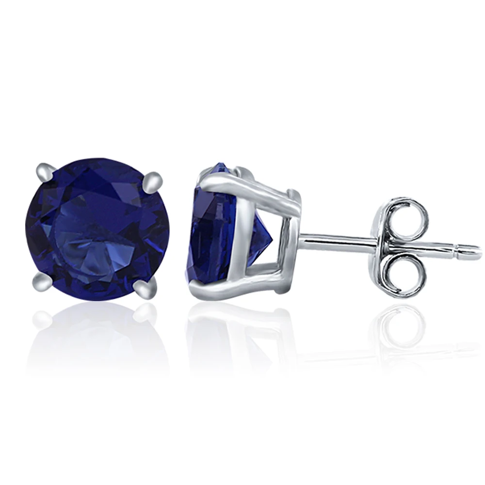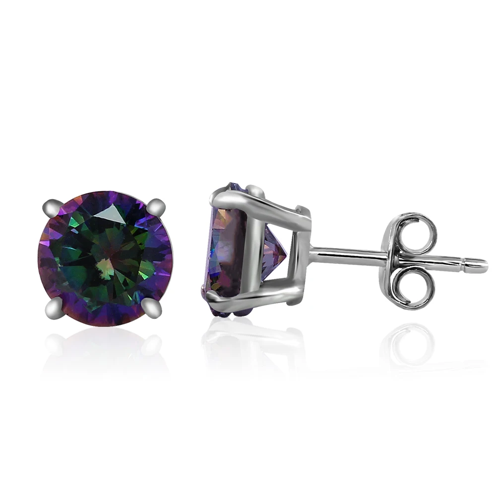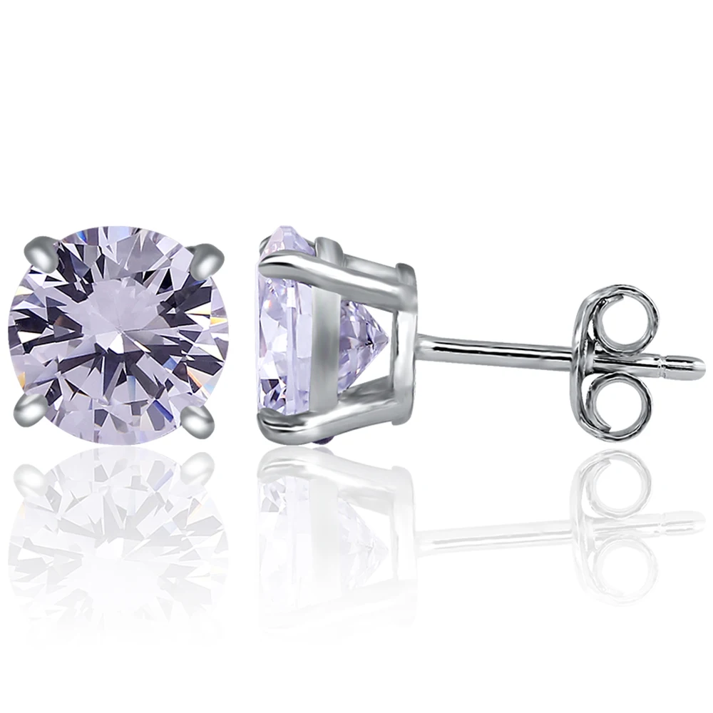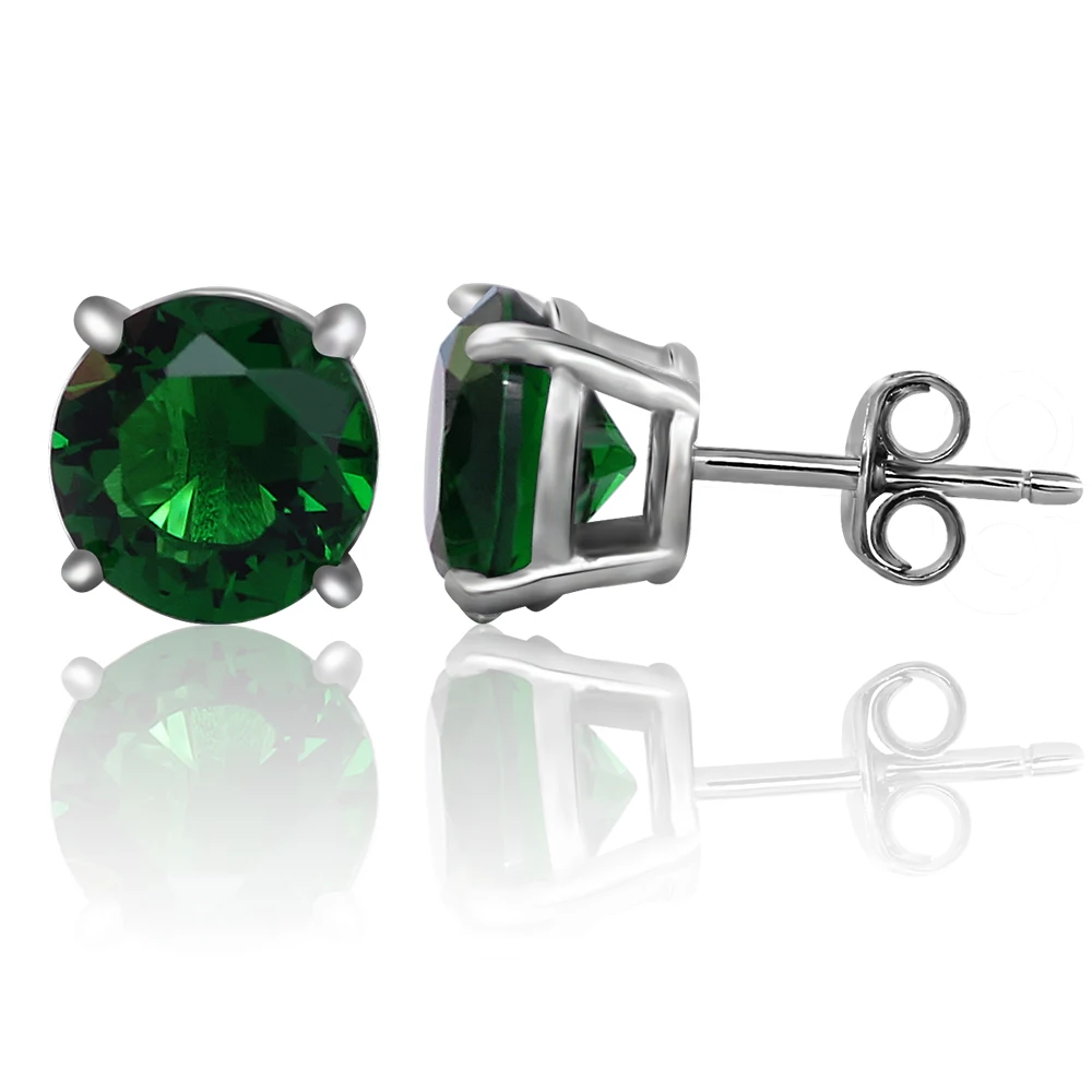 925 Sterling Silver Solitaire Studs | Red/Green Fancy Crystal Options | Rhodium/18K Gold/Rose Gold Plating Four-Prong Setting