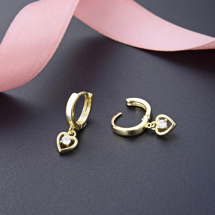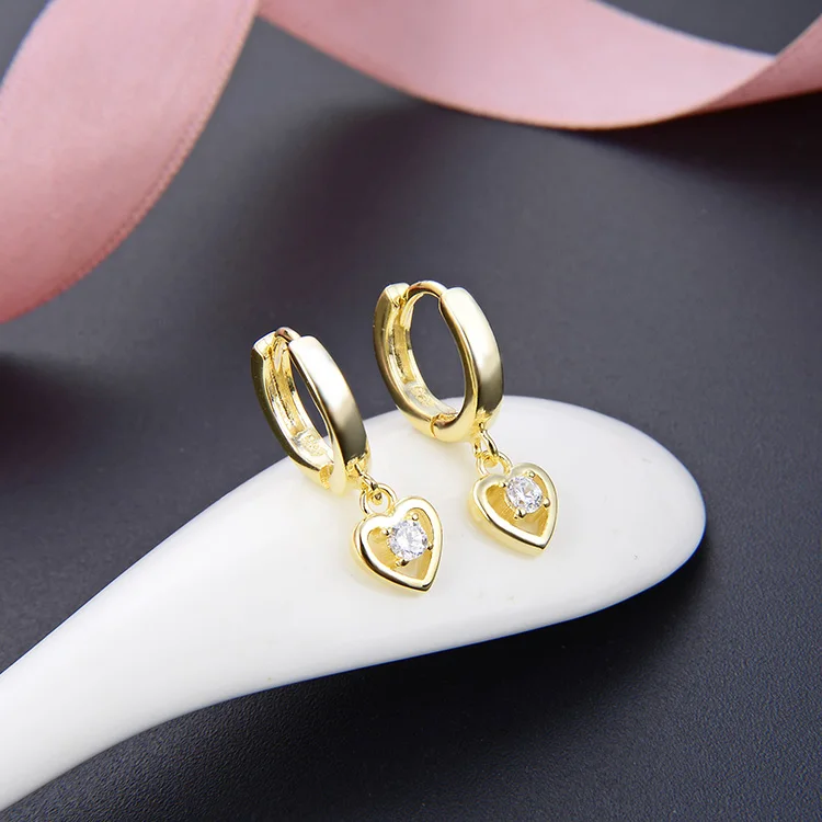 POLIVA Drop Zircon Diamond 18K Gold Plated Heart Shape Stud Earring Earing Women Jewelry Pure 925 Silver Hoop Earrings