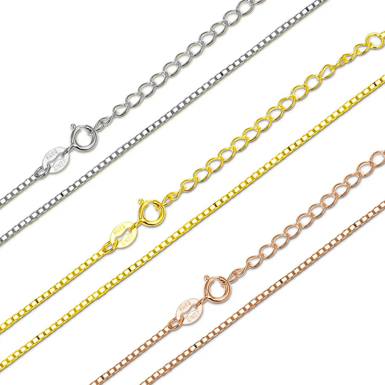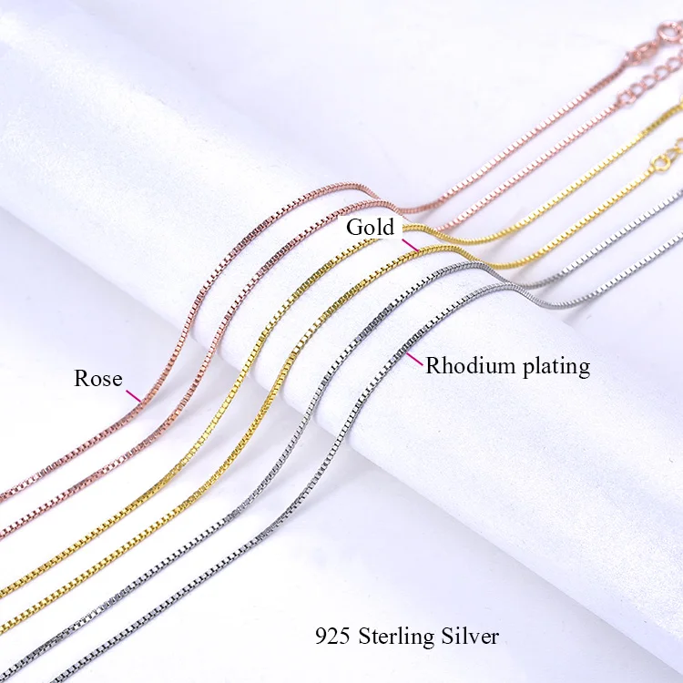 925 Sterling Silver Chains Box Cross Link Styles Rhodium/18K Gold/Rose Gold Plating Varied Widths Adjustable Necklace Wholesale