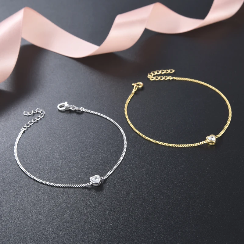 Rhodium Plated 925 Sterling Silver Women's Heart Charm Cuban Chain Bracelet Adjustable Length CZ Accented Links Gift