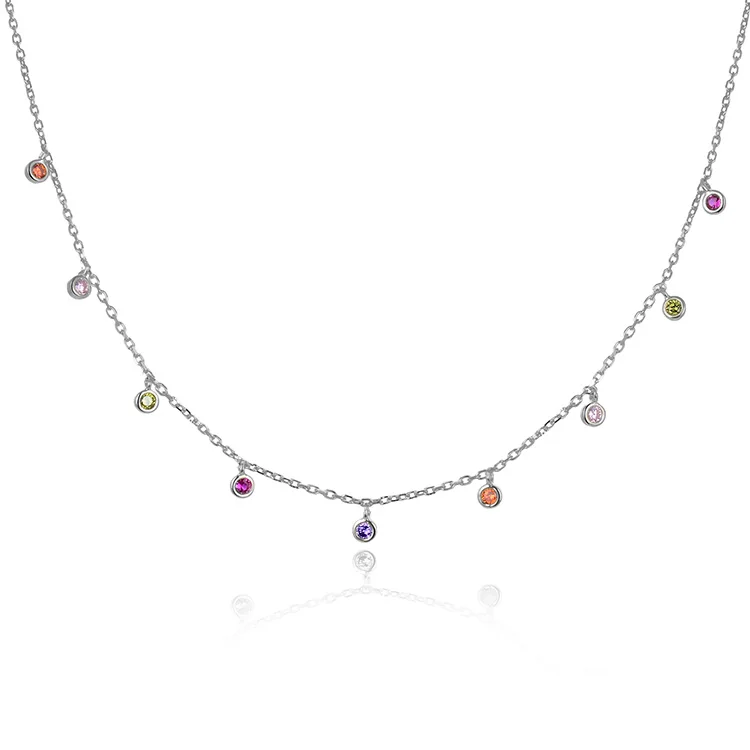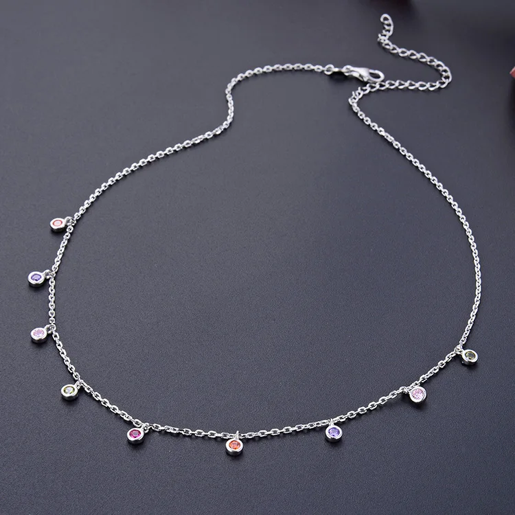 925 Sterling Silver Adjustable Necklace | Multi-Color Round Zirconia Circle Pendants on Cross Chain | Rhodium/18K Gold/Rose Gold
