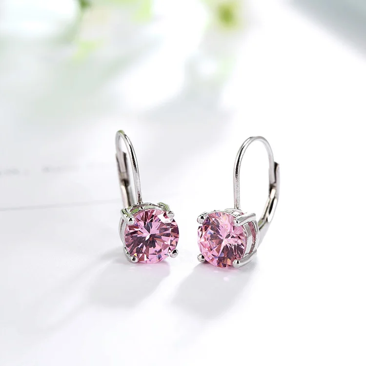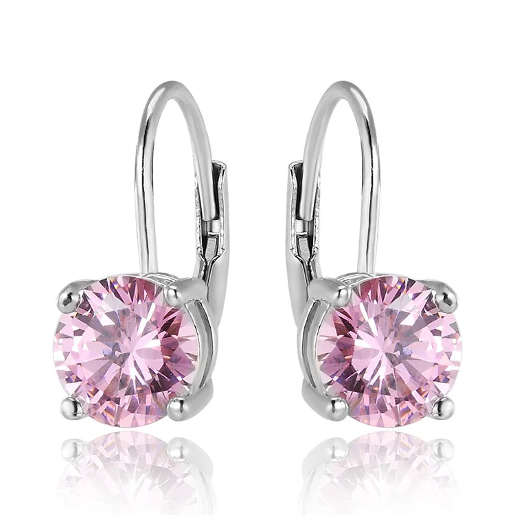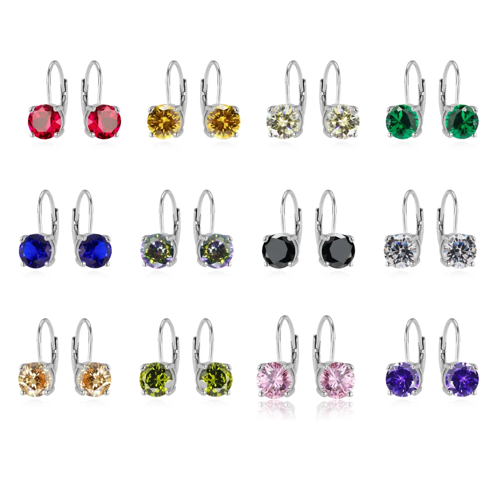 925 Silver Lever Back Earrings Zircon Round Four Prong Lever Back Earring for Women