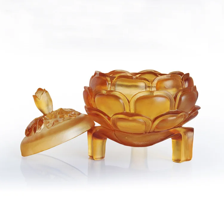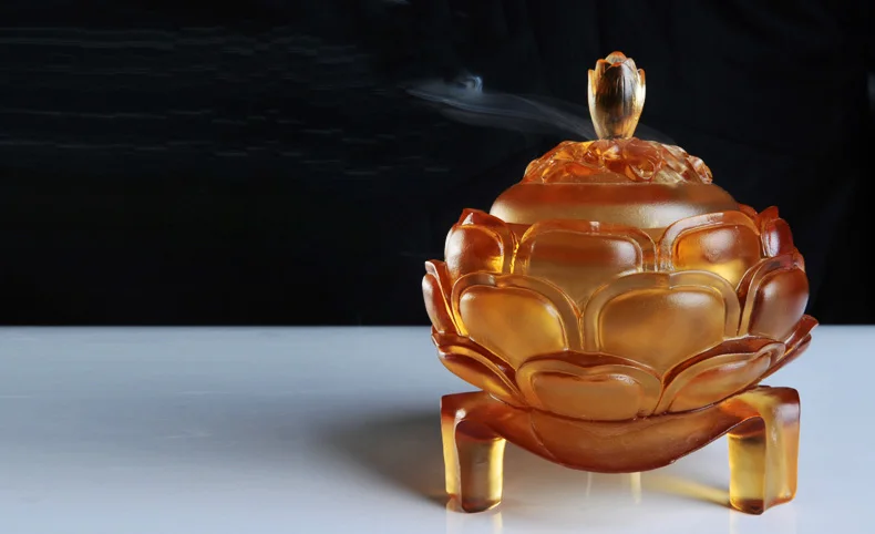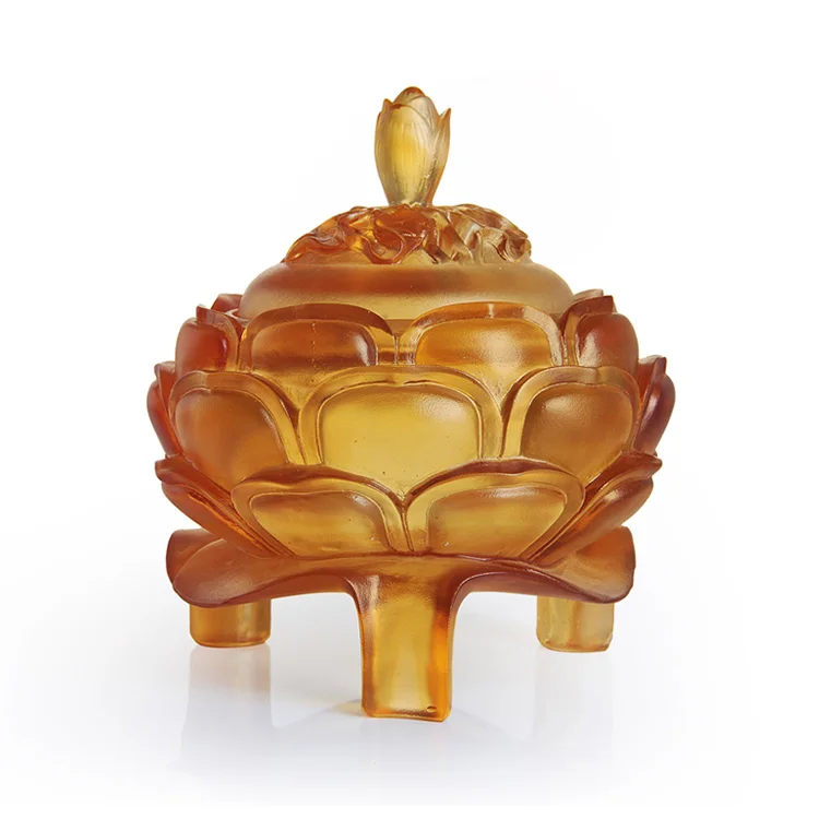 Handmade Liuli Art Glass Lotus Bloom Fragrance Incense Burner Large Size