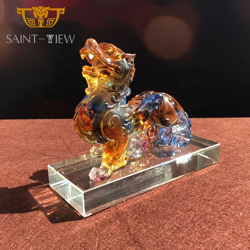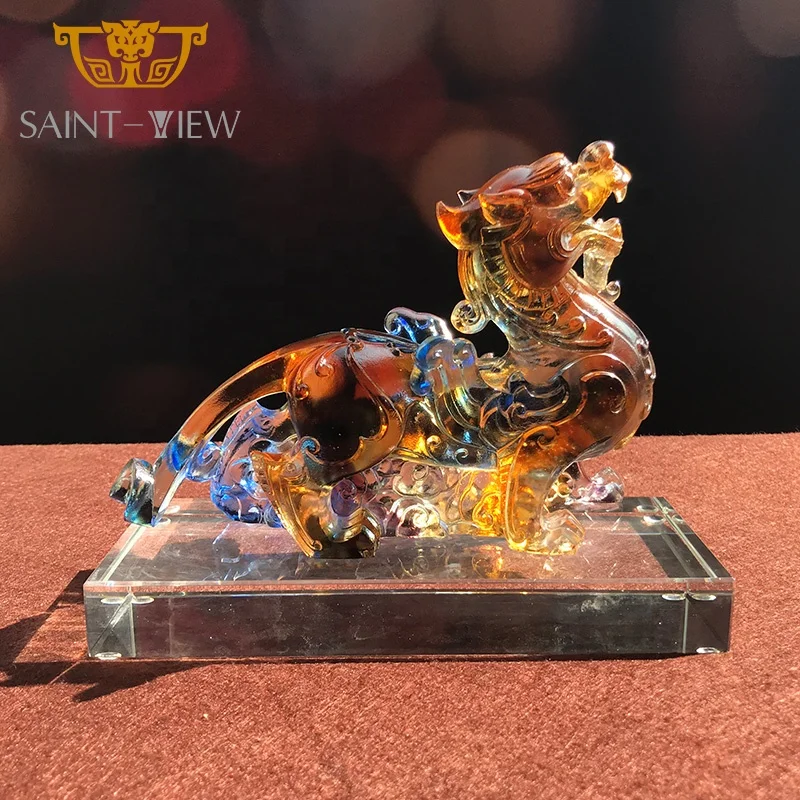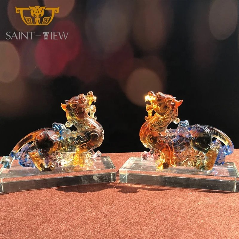 Crystal Fengshui Wholesaler Couple Dragon Pixiu Figurines Money Drawing Liuli Craft
