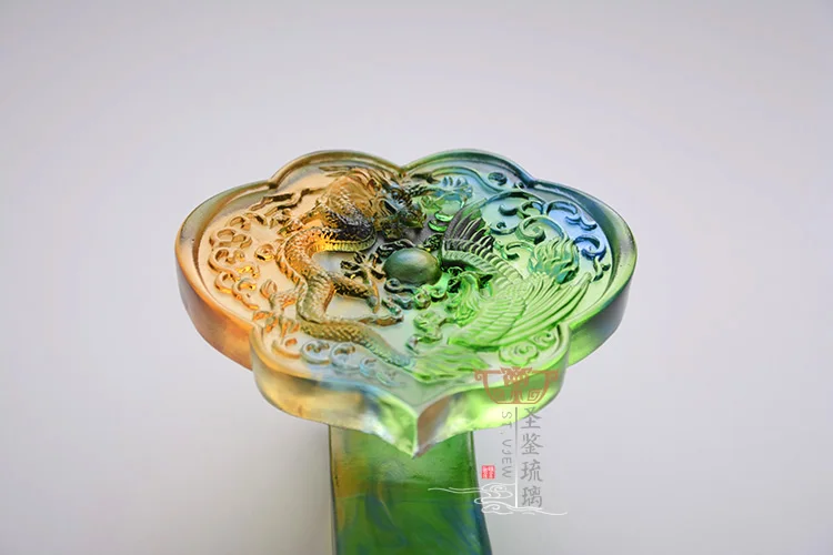 Crystal Glass Liuli Ruyi Dragon Phoenix Chinese Home Lucky Decor Style Fengshui Gift
