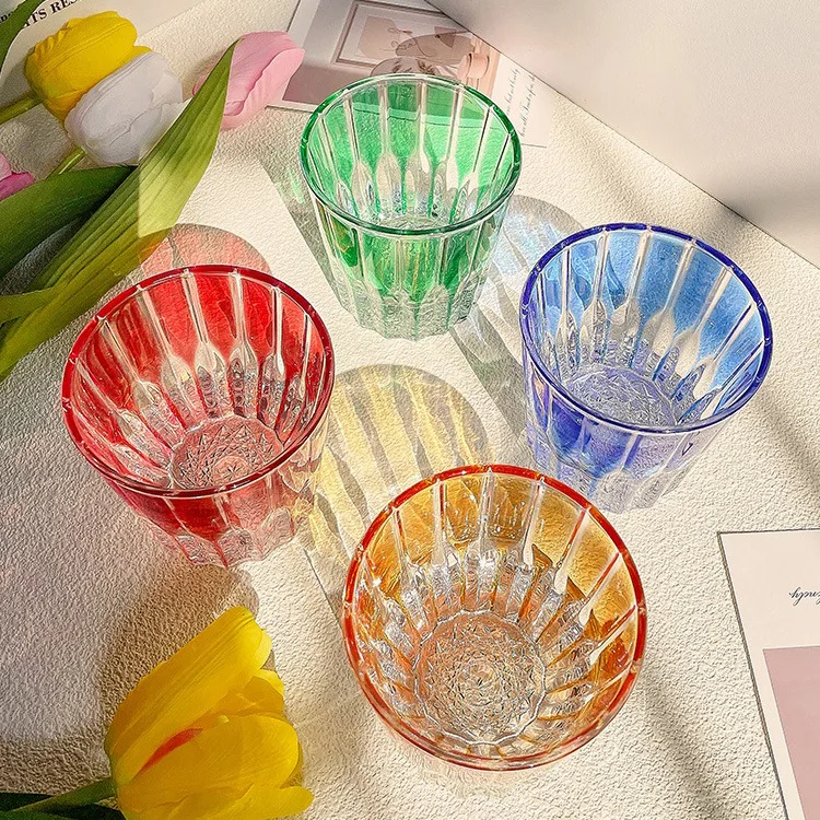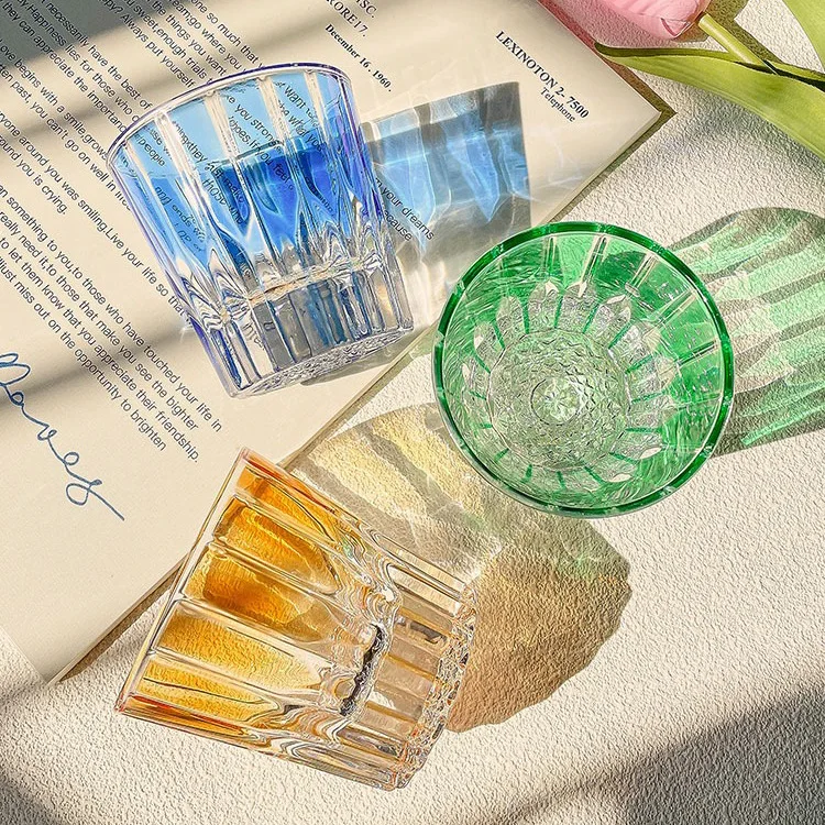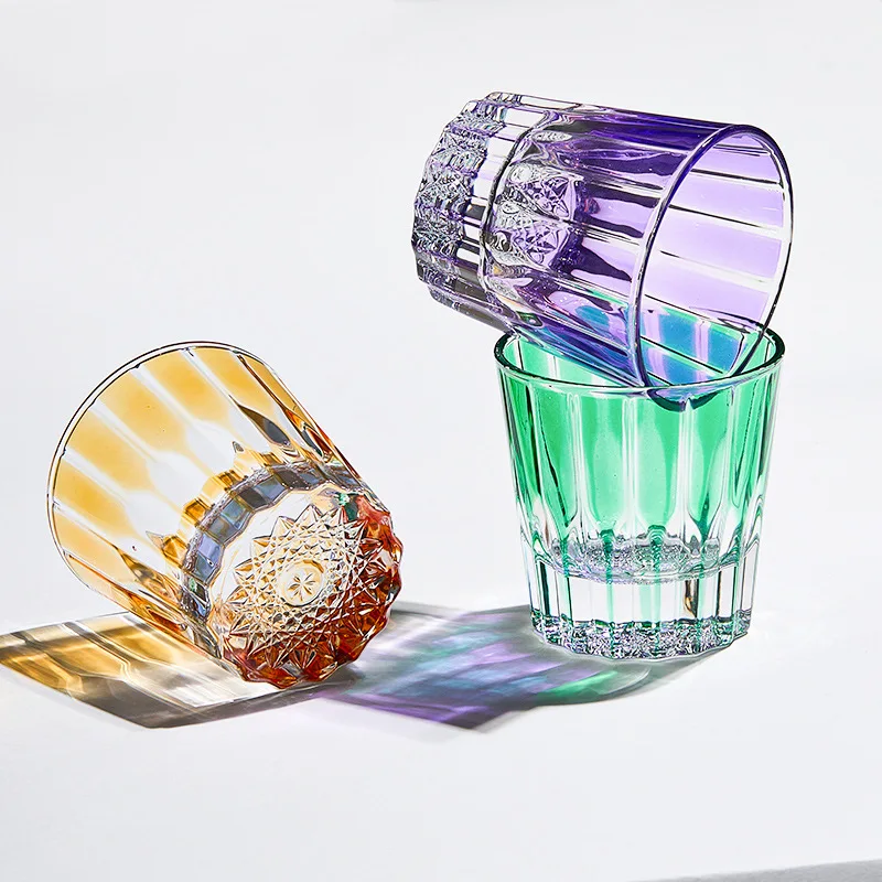 Hand Carved Japanese Edo Kiriko Diamond Cut Glass Cup Wine Glass Colored Drinkware