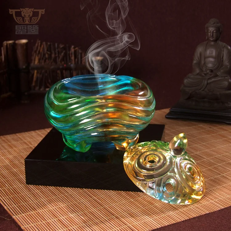 Circular Life: Crystal Glass Liuli Craft Incense Burner Censer