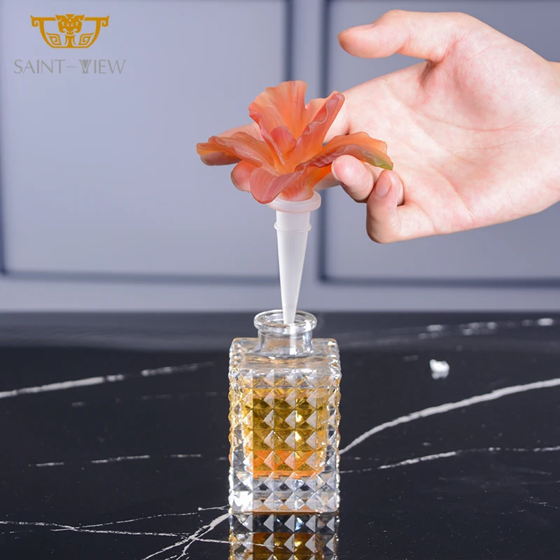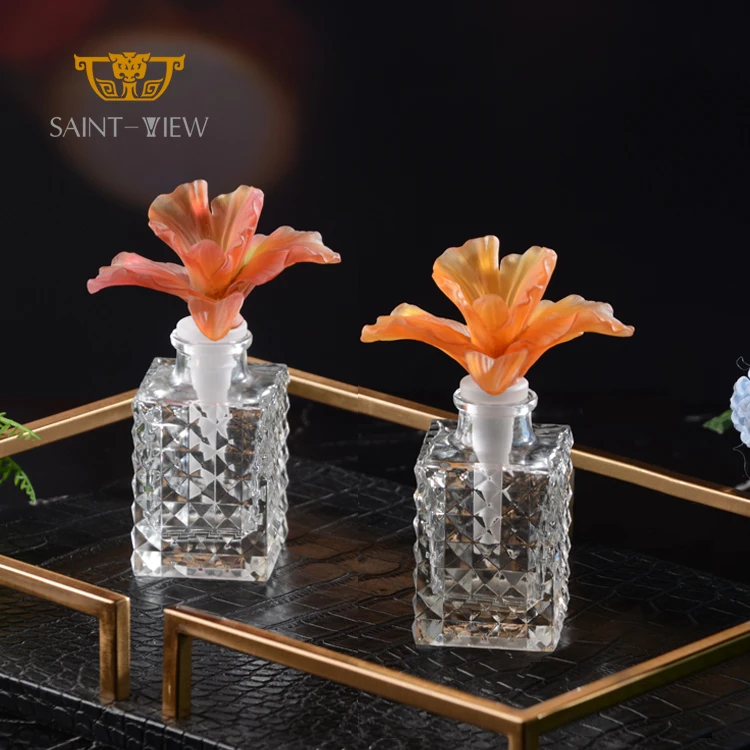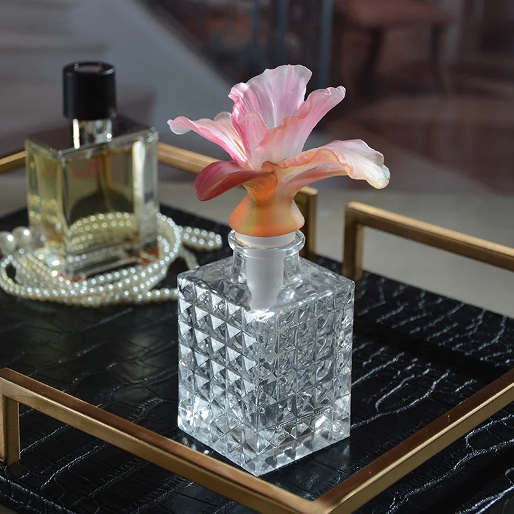 Crystal Art Glass Luxury Flower Shaped Square Perfume Bottle Wedding Giveaway Gift