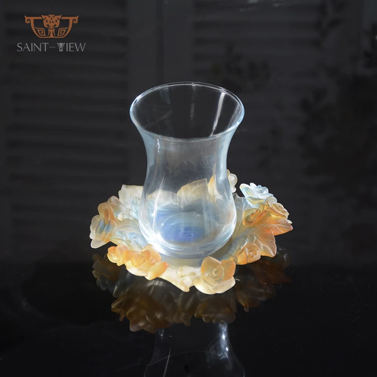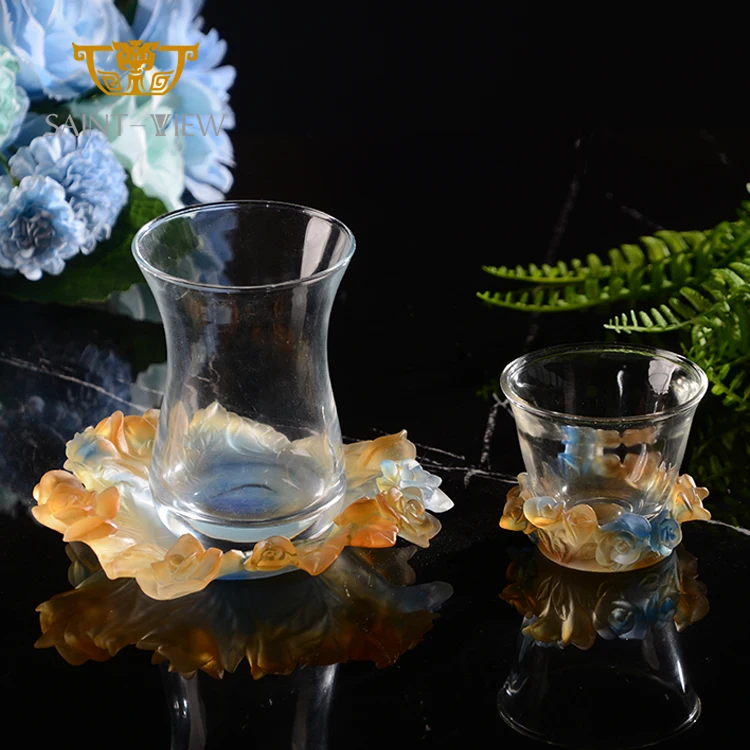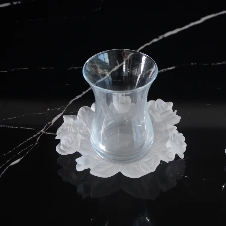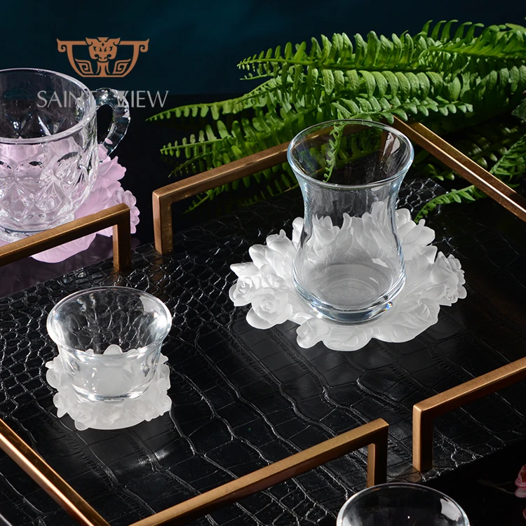 Garden Rose Crystal Glass Arabic Serving Coffee Cup Set