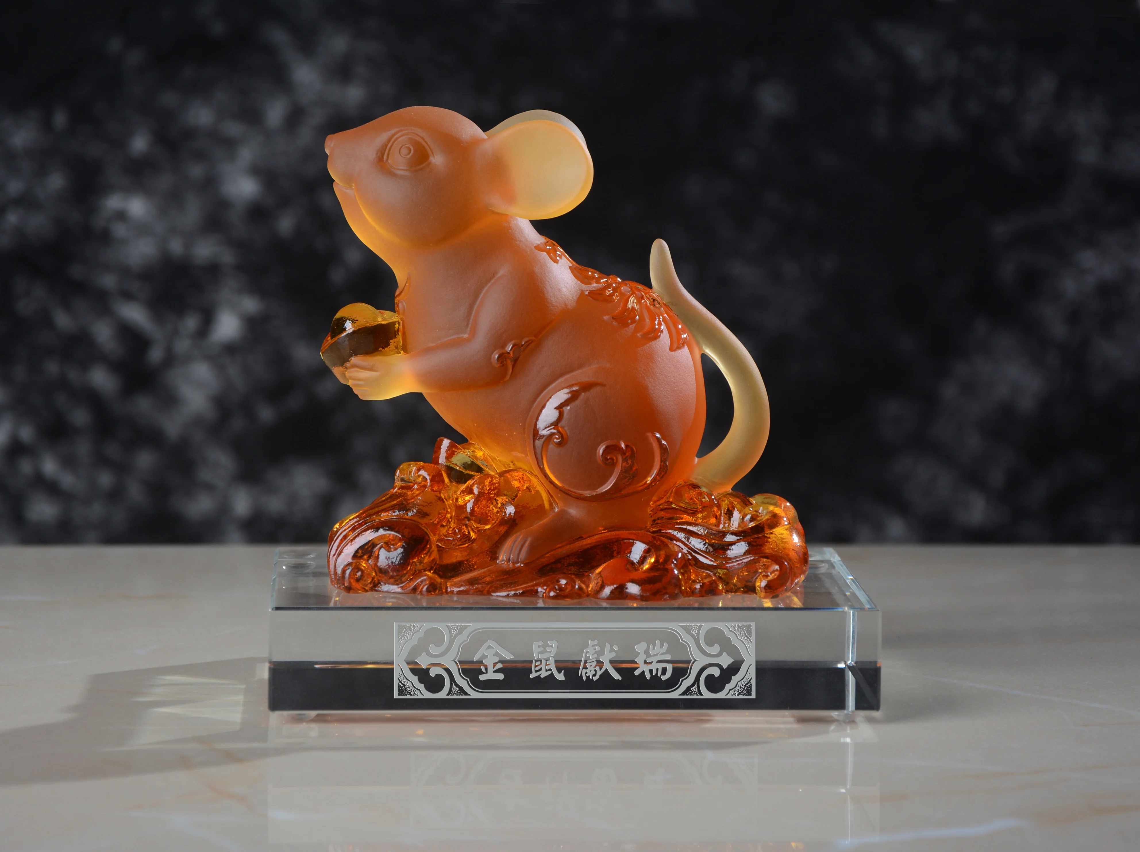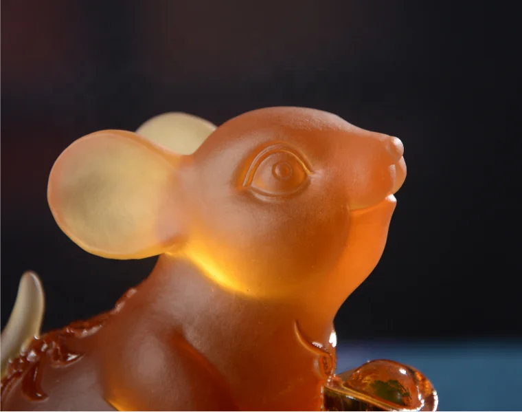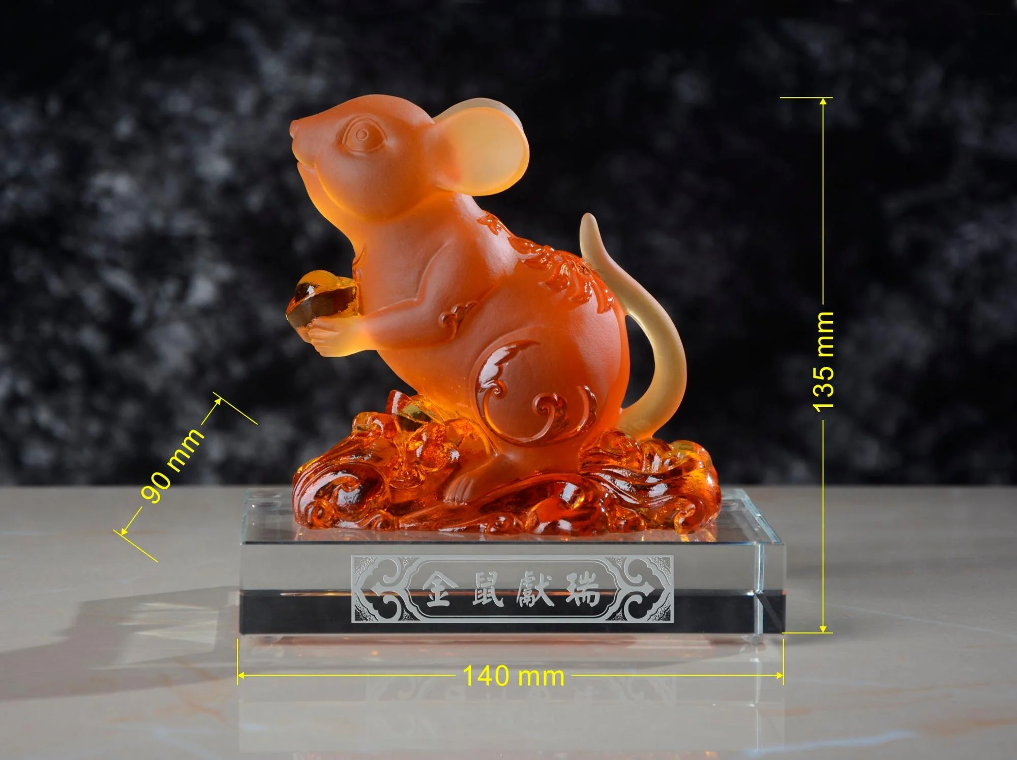 Factory Chinese Zodiac Selling New Year Business Gifts Liuli Crystal Glass Craft Rat Figurine