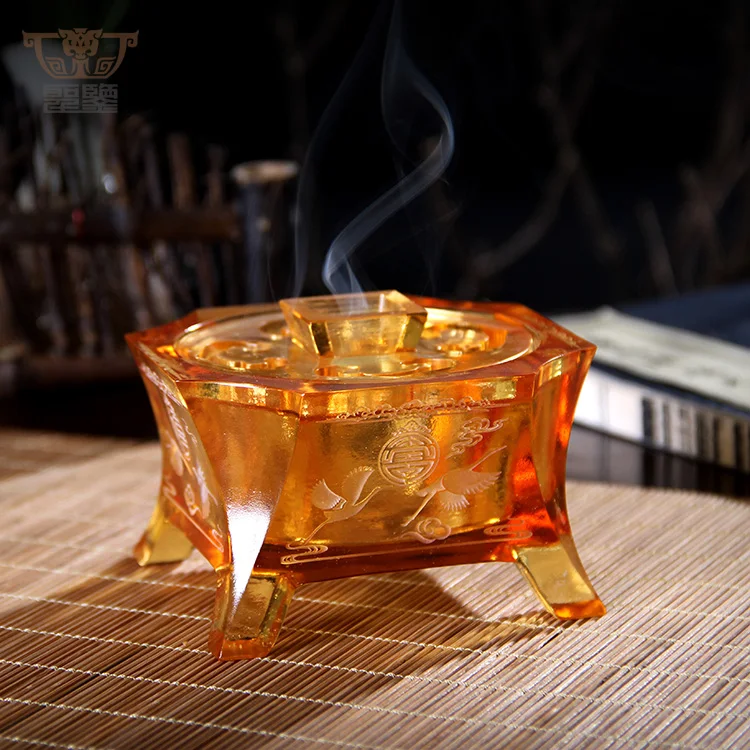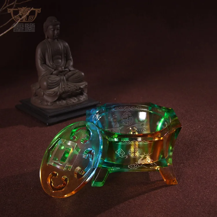 Full Blessing: Crystal Glass Liuli Craft Incense Burner Censer