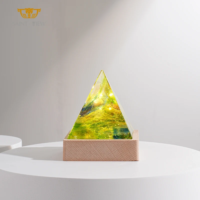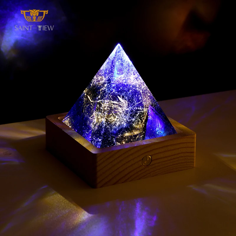 LED Hand Crafted Mini 3D Meditation Energy Generator Healing Crystal Figurine Spiritual Orgonite Orgone Pyramid