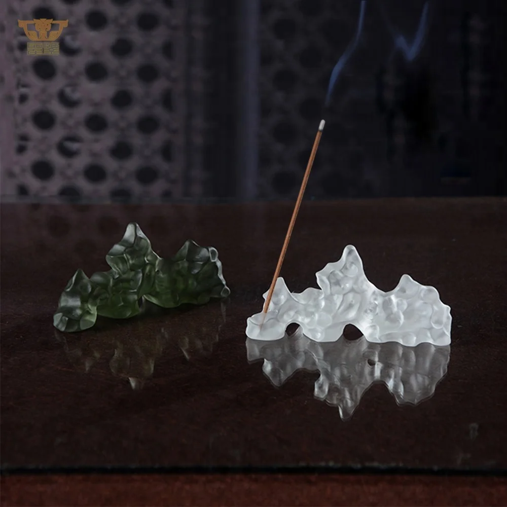 Crystal Casting Glass Taihu Lake Stone Shape Tea End Table Decor Incense Accessories Pen Rack