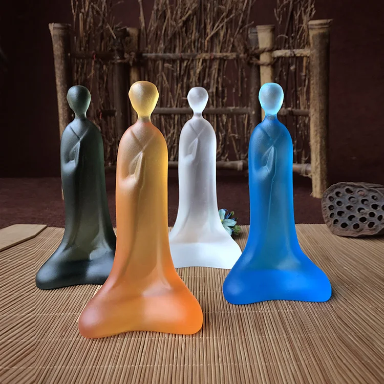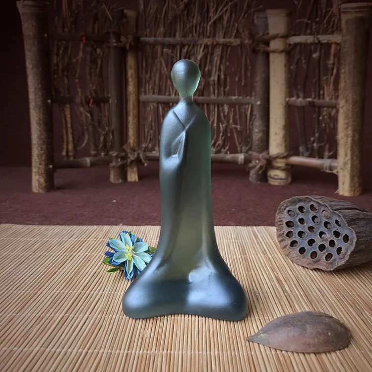 Crystal Liuli Zen CultureTable Decorative Abstract Zen Garden Little Monk Statues - Meditation for Desk