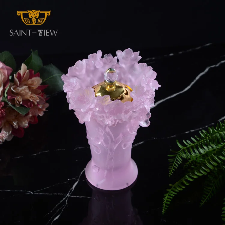 Oriental Classic Pink Sakura Flower Shape Decorative Crystal Aroma Oil Incense Burner