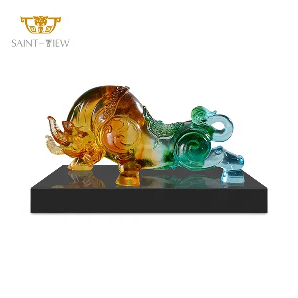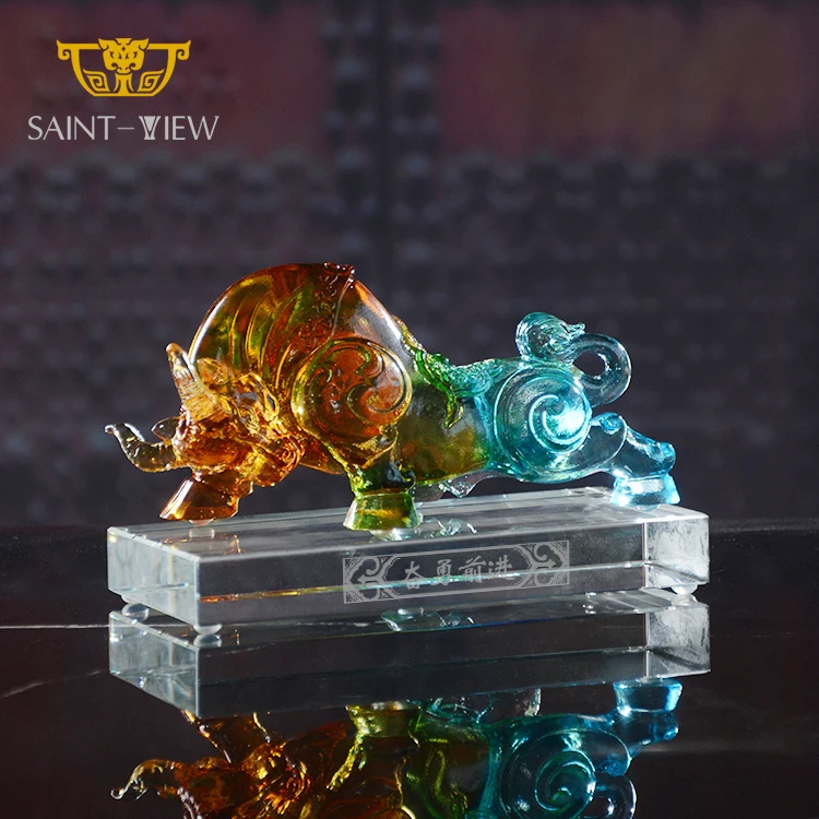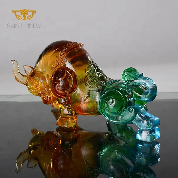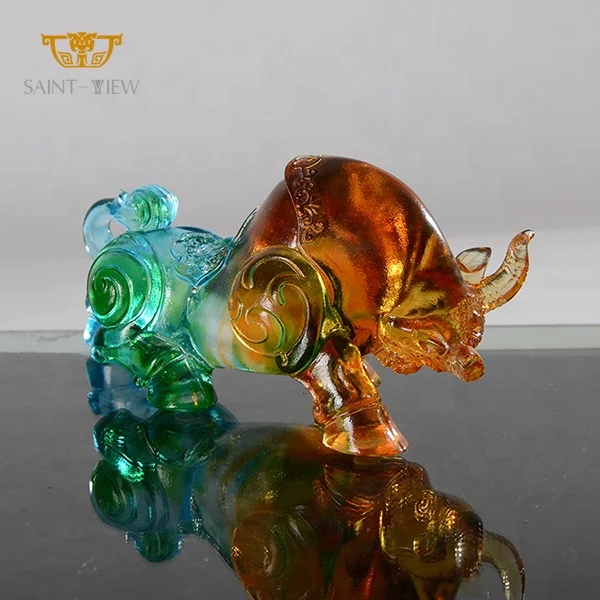 SAINT-VIEW Wholesale High Quality Liuli Crystal Animal Sculpture Power Bull Craft