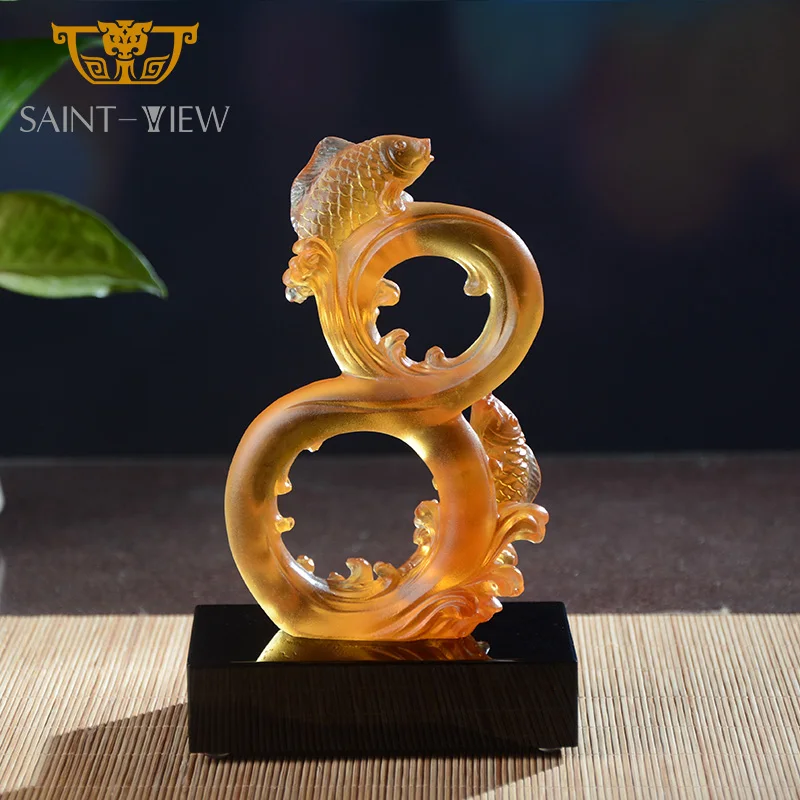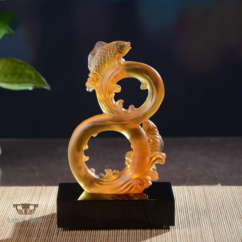 Glass Make Good Fortune Fish Sculpture With Crystal Base Corporate Gift