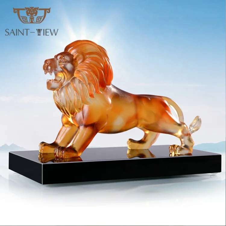 Casting Crystal Glass Amber Lion Wild Animal Statue Figurine Home Decor