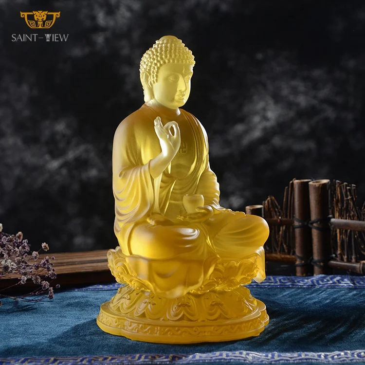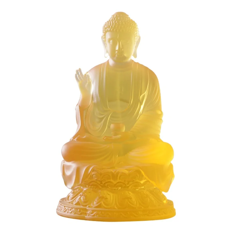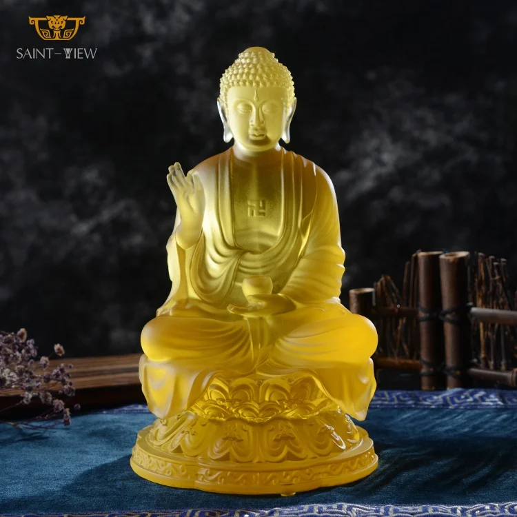 Chinese Handmade Crystal Garden Liuli Medicine Buddhism Buddha Statue