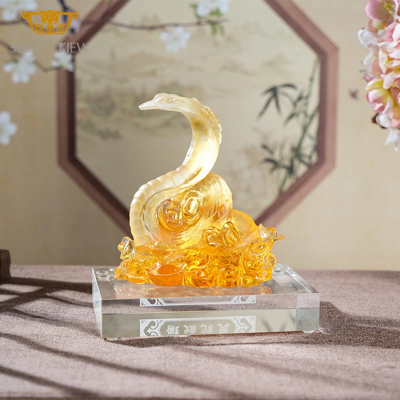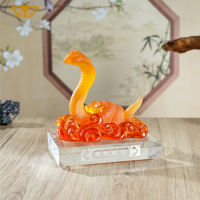 Liuli Furnishing Ornament Gift Wholesale Manufacture Crystal Glass Sculpture Statue Year Snake 2026 New