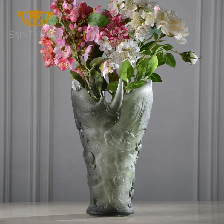 Customization European Vintage Animal Sculpture Decor Murano Crystal Glass Flower Art Vase