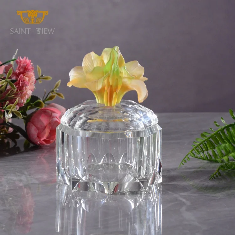 Glass Sandalwood Container Flower Lid Jewelry Sundries Box Clear Crystal 2026 New Creation Instagram Novelty Glass Jar