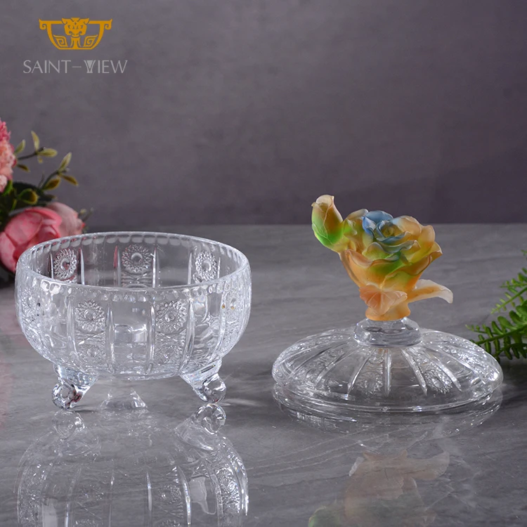 Wholesale Factory Customization Crystal Plant Nordic Style Sunflower Candy Sugar Jar