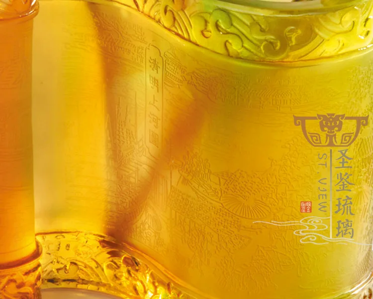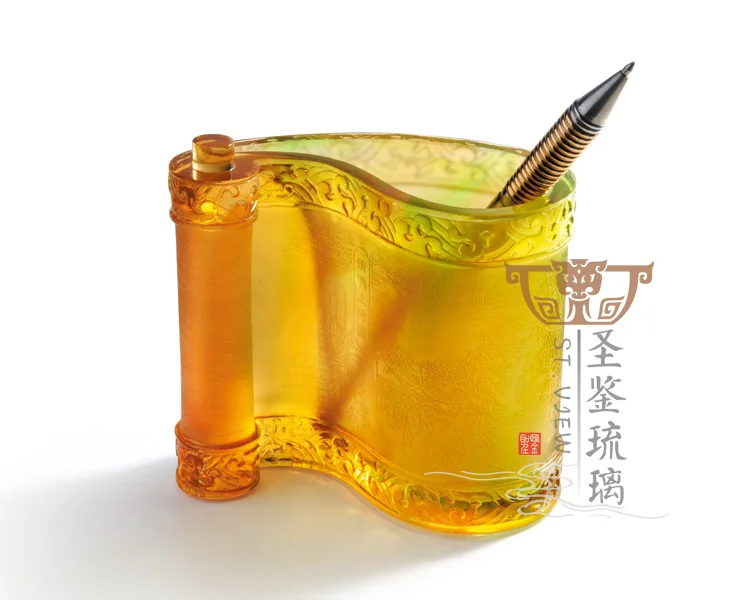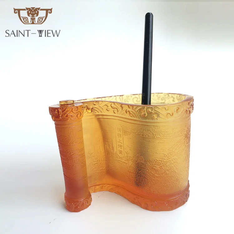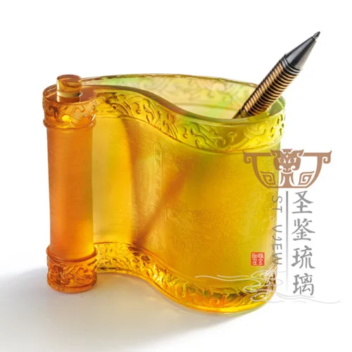 High Quality Stylish Luxury Liuli Crystal Art Chinese Scroll Custom Logo Pen Holder Office Table Decor