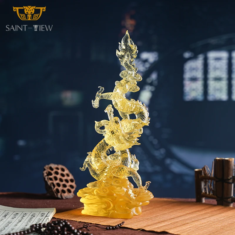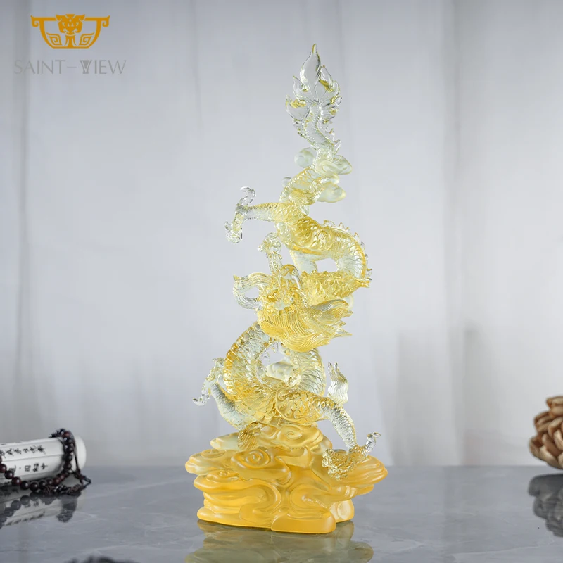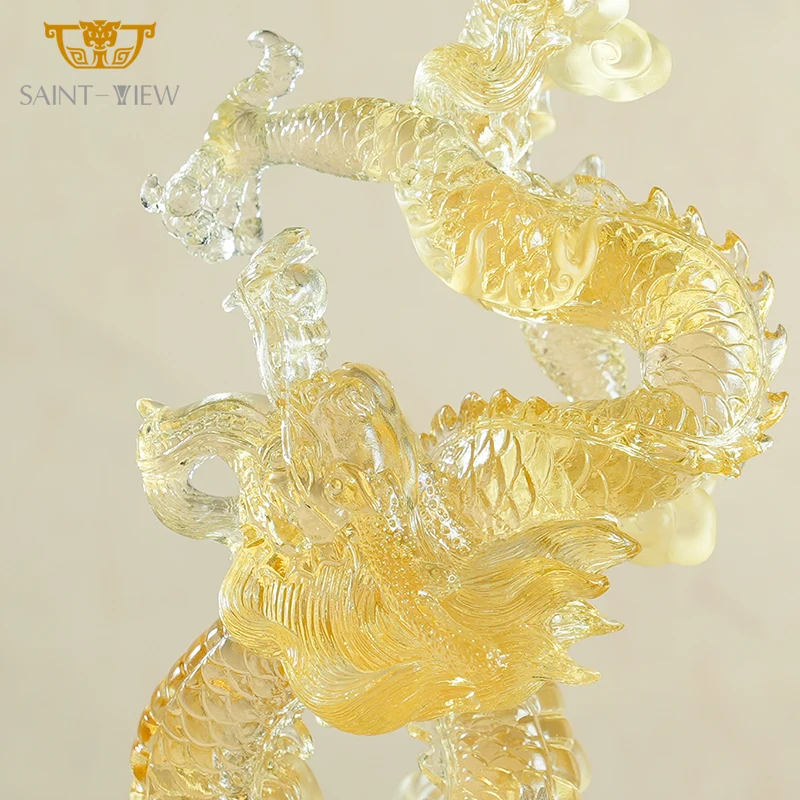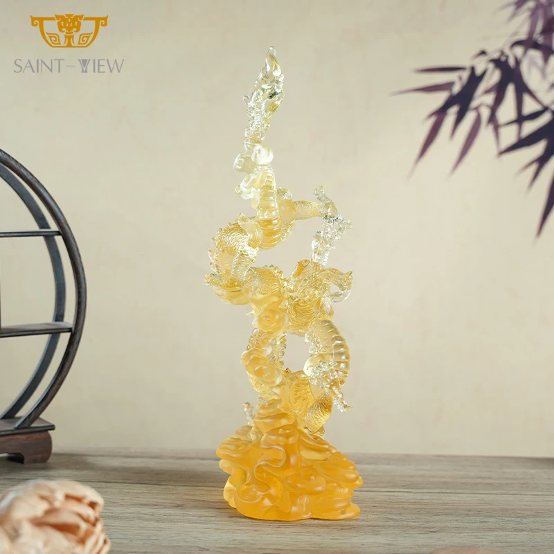 Chinese Zodiac Crystal Dragon Sculpture Yellow Handmade Craft Dragon