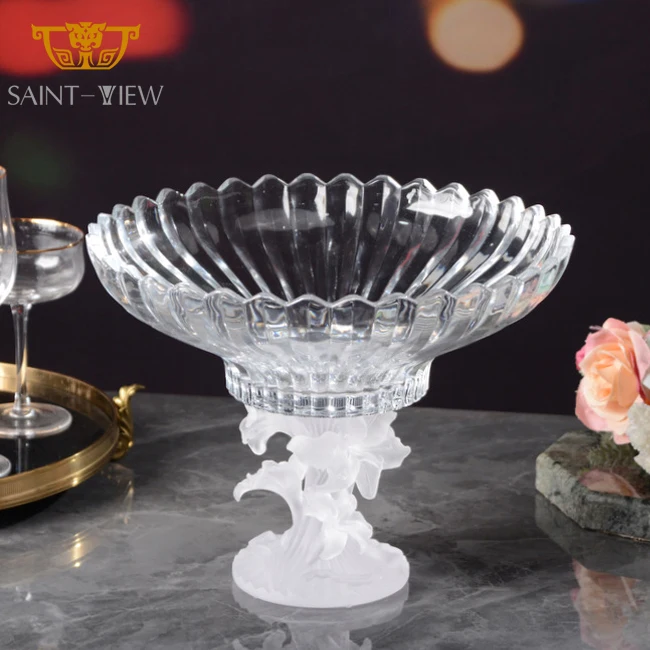 Hot Sale Luxury Reusable Party Wedding Plate Bowl Party Centerpiece Decorations Flowers Round Fluted Plate With Base
