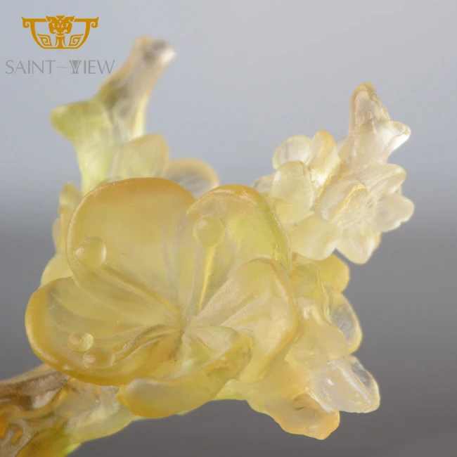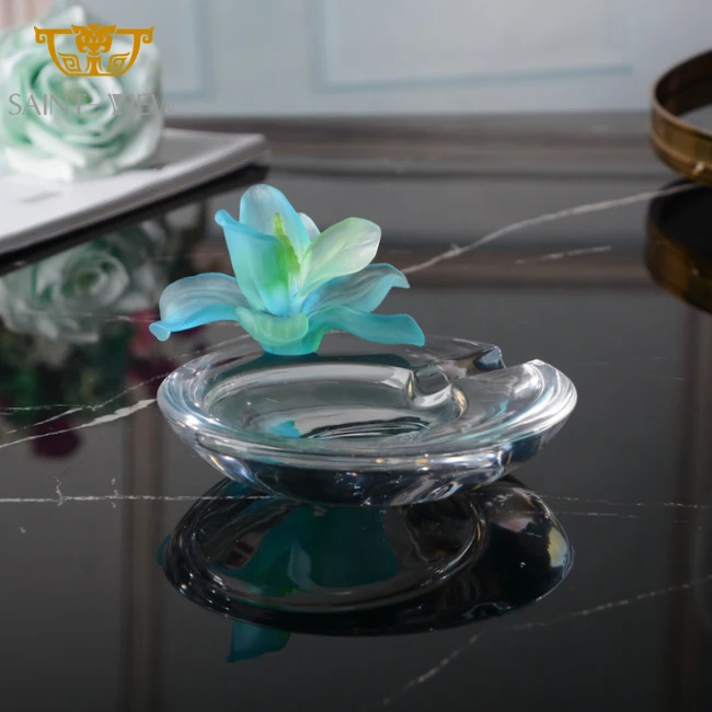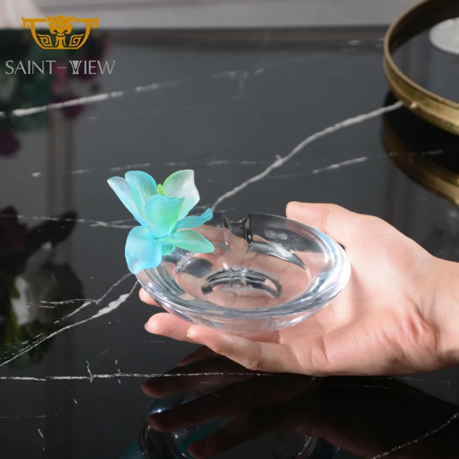 SAINT-VIEW Custom FLower Design Hand Carving Ash Tray Hotel Bar Crystal Glass Round Cigar Ashtray With Glass Holder
