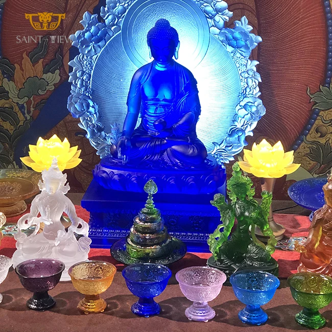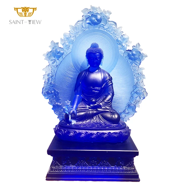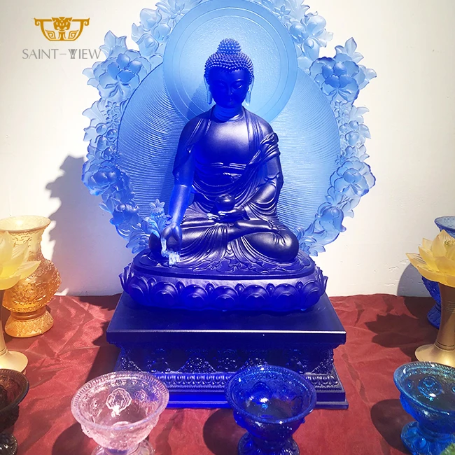 Large Custom Engineering Crystal Glass Consecrate Buddhism Temple Decor Gilding Buddha Statue Sculpture